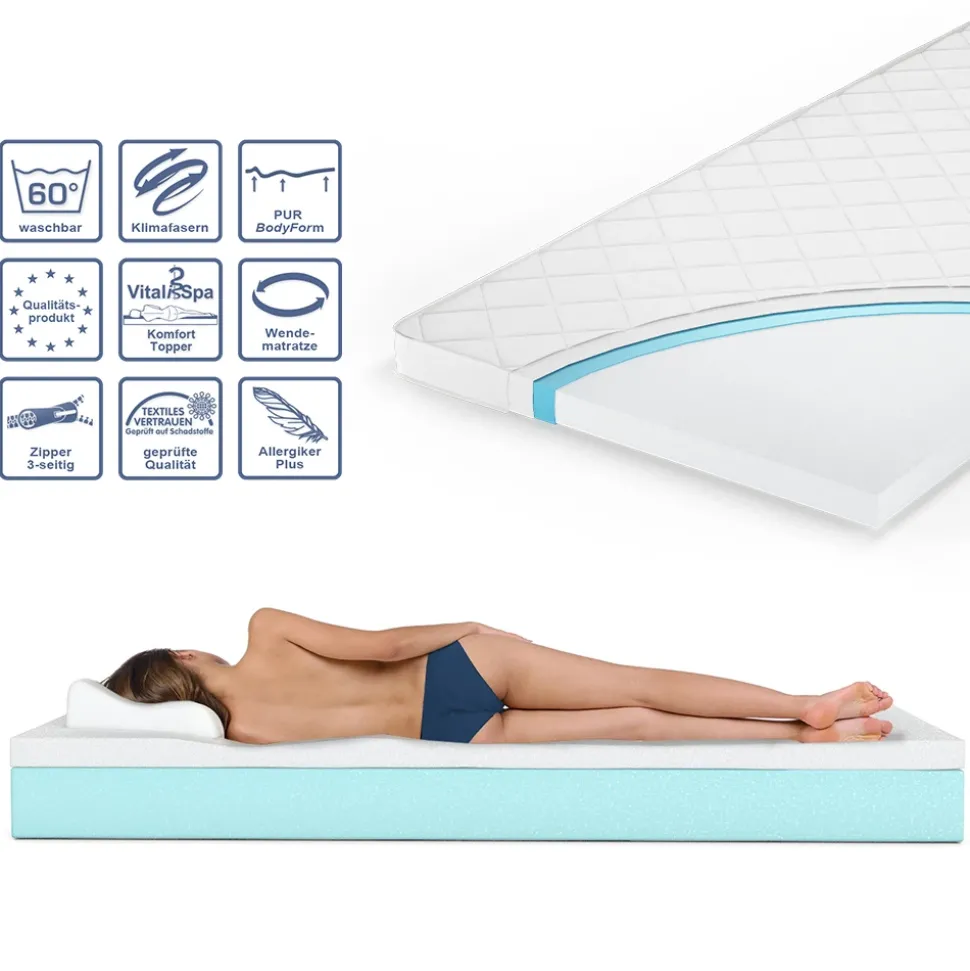 - MAßE: Der Topper für Matratzen hat eine Breite von 90 cm, eine Höhe von 6 cm und eine Tiefe von 200 cm. Alle detaillierten Größen sind auf den Fotos angegeben.