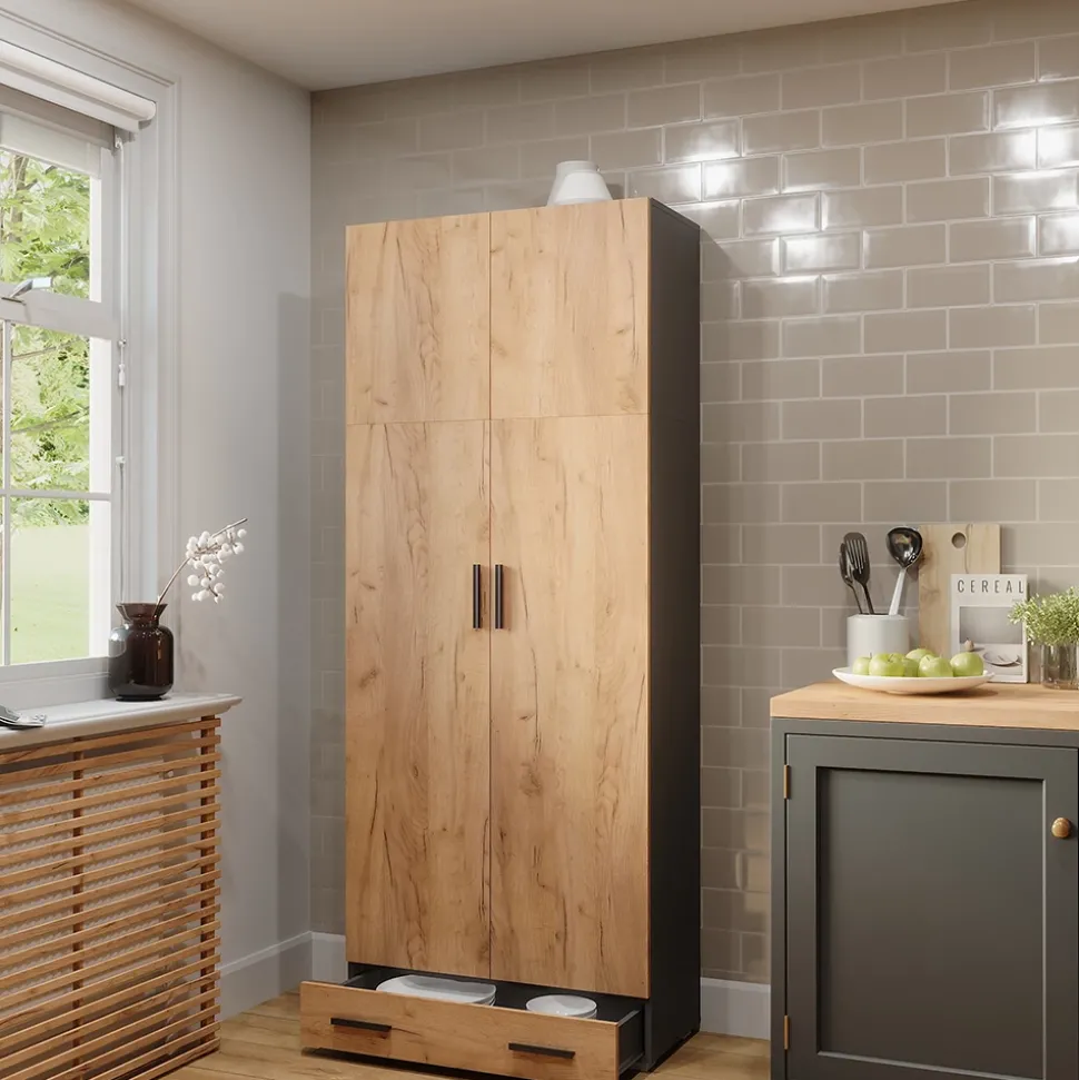 - MAßE: Der Universalschrank hat folgende Abmessungen: Höhe: 201,2 cm, Breite: 80 cm, Tiefe: 37 cm. Die detaillierten Größen sind auf den Fotos angegeben.