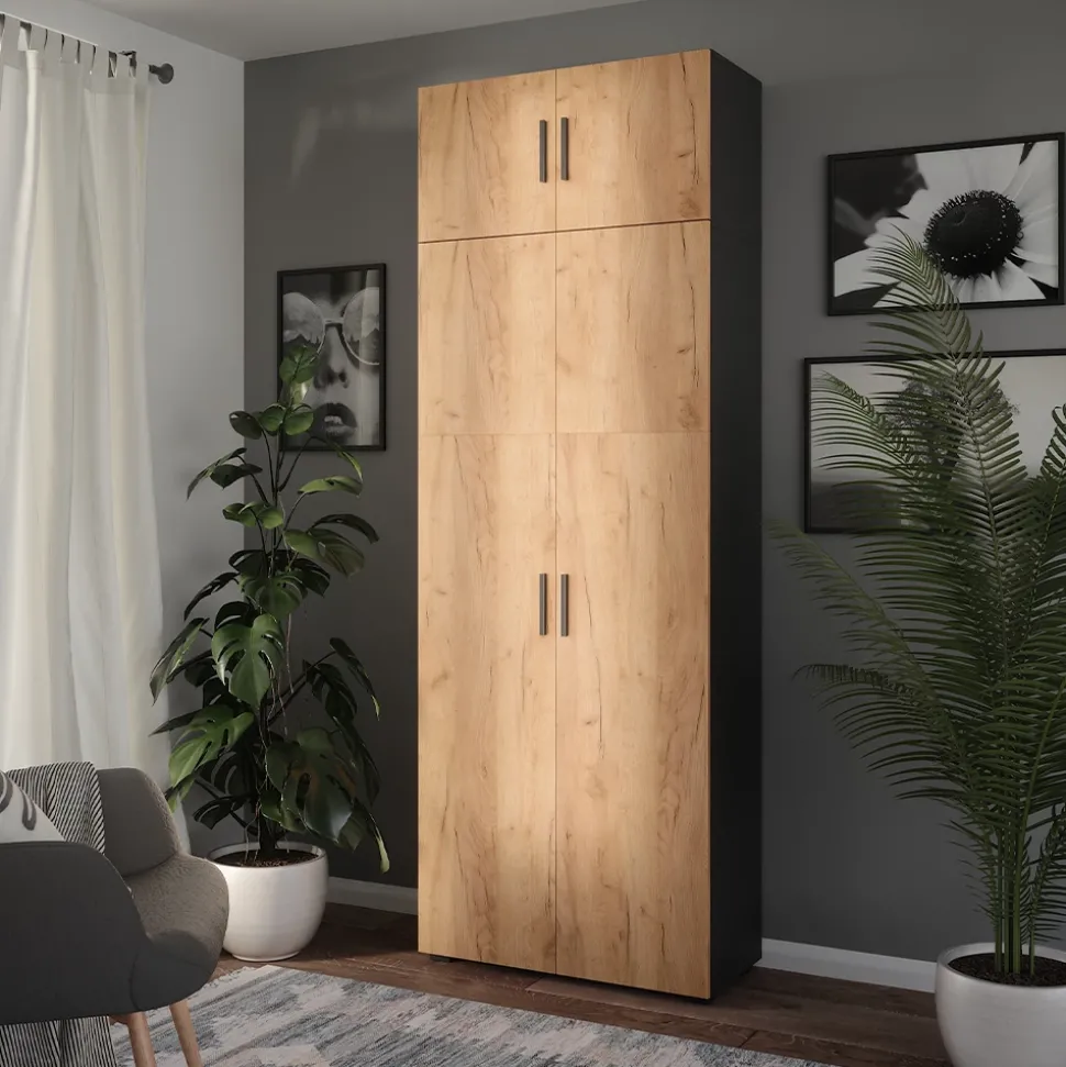 - MAßE: Der Universalschrank hat folgende Abmessungen: Höhe: 223,8 cm, Breite: 80 cm, Tiefe: 37 cm. Die detaillierten Größen sind auf den Fotos angegeben.