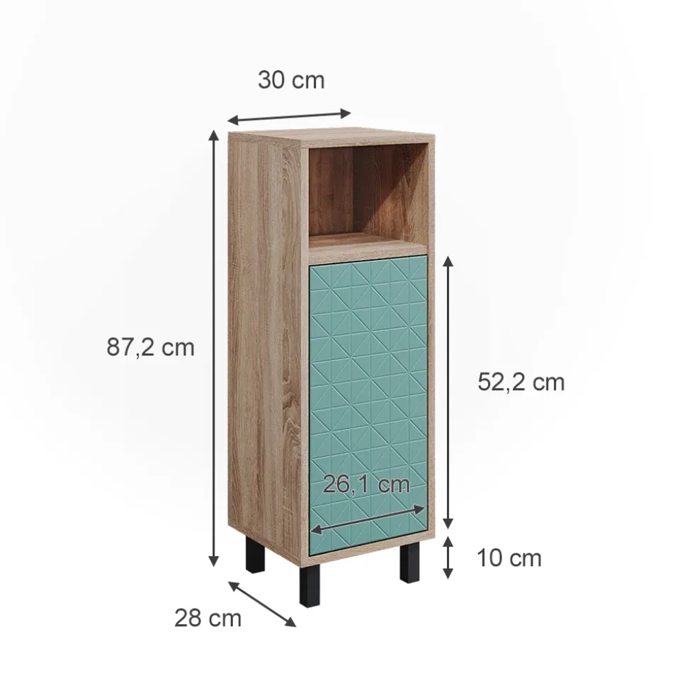 - MAßE: Das Badezimmermöbel hat eine Breite von 30 cm, eine Höhe von 87,2 cm und eine Tiefe von 28 cm. Alle detaillierten Größen sind auf den Fotos angegeben.