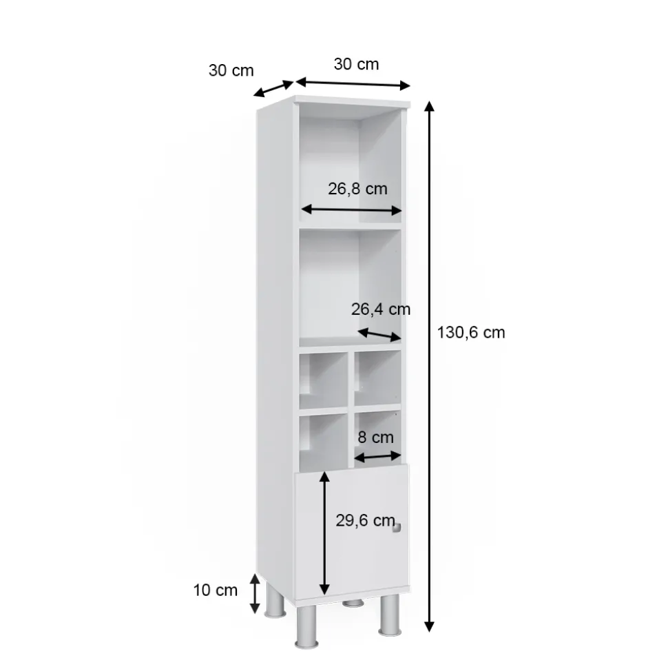 - MAßE: Das Badezimmermöbel hat eine Breite von 30 cm, eine Höhe von 130,6 cm und eine Tiefe von 30 cm. Alle detaillierten Größen sind auf den Fotos angegeben.