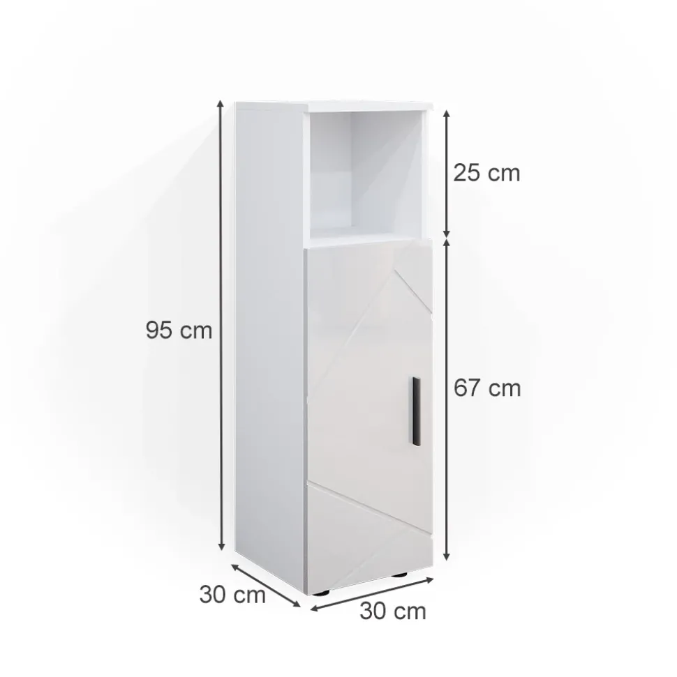 - MAßE: Das Badezimmermöbel hat eine Breite von 30 cm, eine Höhe von 95 cm und eine Tiefe von 30 cm. Alle detaillierten Größen sind auf den Fotos angegeben.