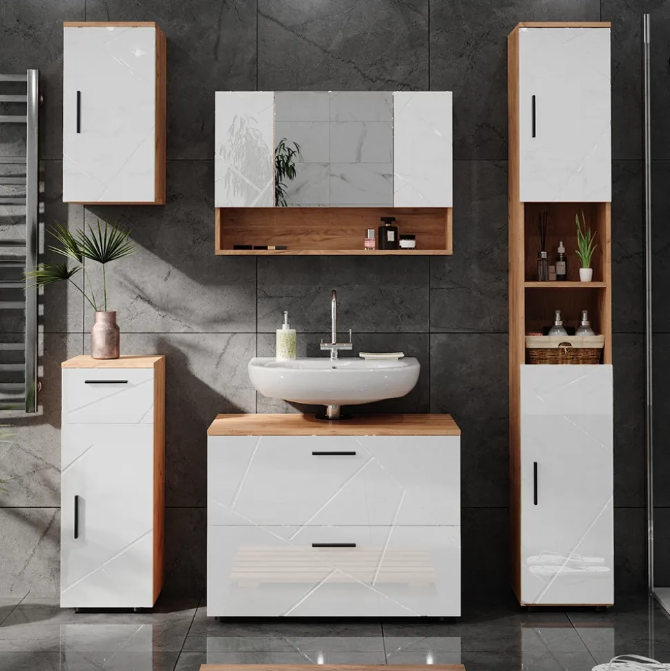 „Irma“ ist eine Möbelserie, die sowohl Badezimmer- als auch Schlafzimmermöbel sowie Schminktische umfasst. Mit vielen Farbkombinationen und Optionen für einzelne Einheiten und Sets bietet sie vielseitige Möglichkeiten. Die Fronten bestehen aus MDF.