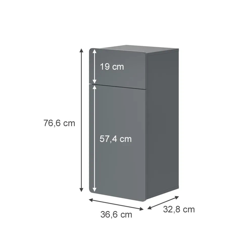 - MAßE: Der Midischrank, mit Schublade und Tür, hat folgende Maße: Tiefe von 32,8 cm, Breite von 36,6 cm und Höhe von 76,6 cm. Alle detaillierten Größen sind auf den Fotos angegeben.
