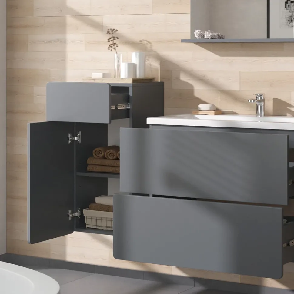 Die Möbelserie „Izan“ bietet eine Vielzahl von Badezimmermöbeln mit verschiedenen Optionen für einzelne Einheiten und Sets. Schaffen Sie ein stilvolles und praktisches Badezimmer mit den Möbeln der Serie „Izan“.