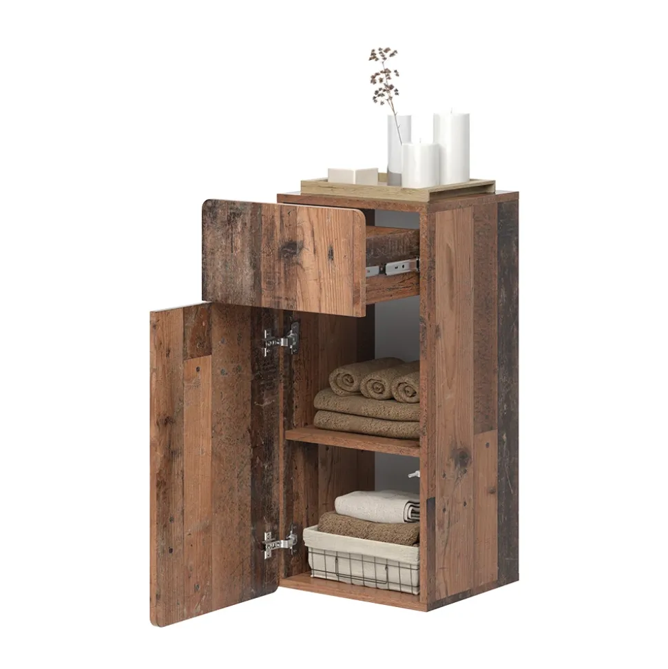 - Das Badmöbelstück verfügt über eine Schublade, ein Einlegeboden und eine Tür für reichlich Stauraum. Es bietet ein praktisches Aufbewahrungssystem für Ihre Badezimmerutensilien.