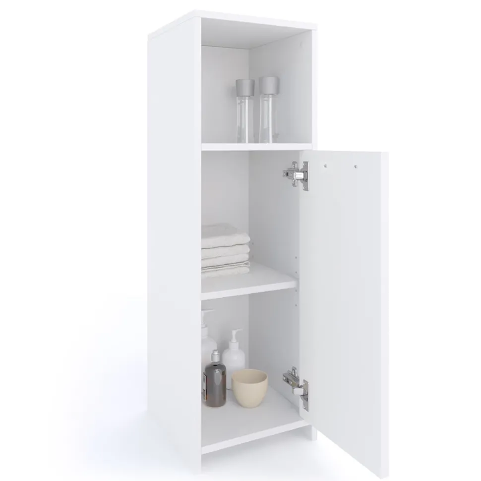 - Der Badschrank bietet eine offene und geschlossene Ablageflächen sowie ausreichend Stauraum. Die Tür lässt sich in beiden Richtungen anbringen.