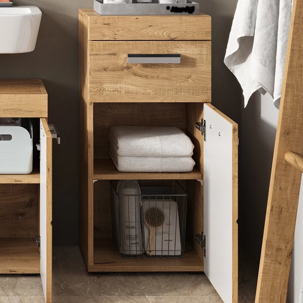 - MATERIAL: Der Badschrank besteht aus pflegeleichter Spanplatte 16 mm, mit einer Melaminharzbeschichtung