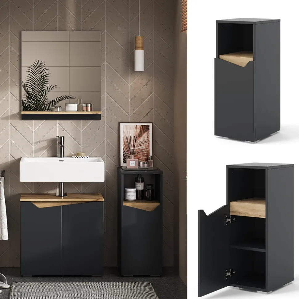 - Entdecken Sie den modernen Vicco Midischrank Marelle. Mit den Maßen 30 x 74 cm ist er der perfekte Badschrank in Weiß-Artisan für Ihre Badezimmermöbel.
