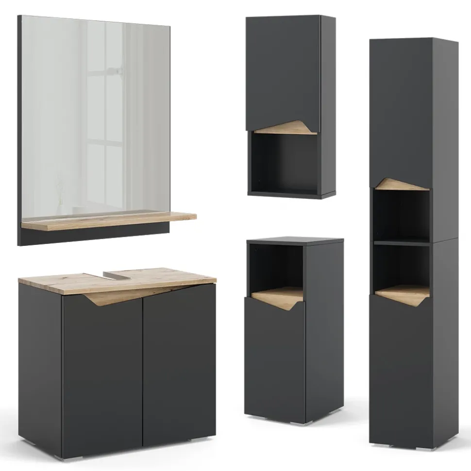 Die Möbelserie „Marelle“ bietet stilvolle Badezimmerschränke und -sets, die mit ihrem zeitgemäßen Design und hochwertigen Materialien eine elegante Lösung für die Einrichtung Ihres Badezimmers bieten. Mit „Marelle“ schaffen Sie eine funktionale und ästhetische Umgebung für Ihre tägliche Pflegeroutine im Bad.