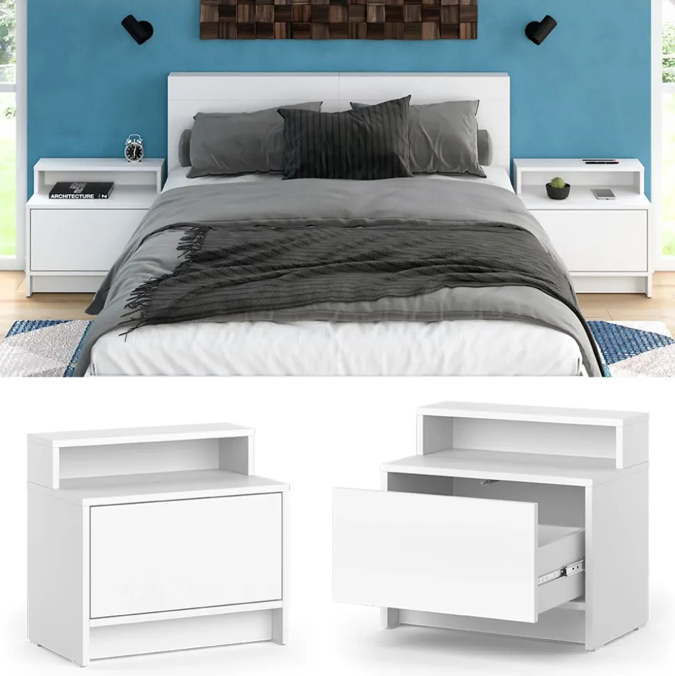- Der Nachtschrank Naara ist eine elegante Nachtkommode mit Schublade und zusätzlichem Ablagefach. Ideal für Schlaf- oder Kinderzimmer als Beistelltisch oder Nachtkonsole.