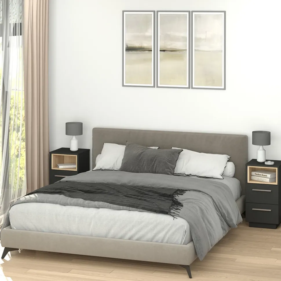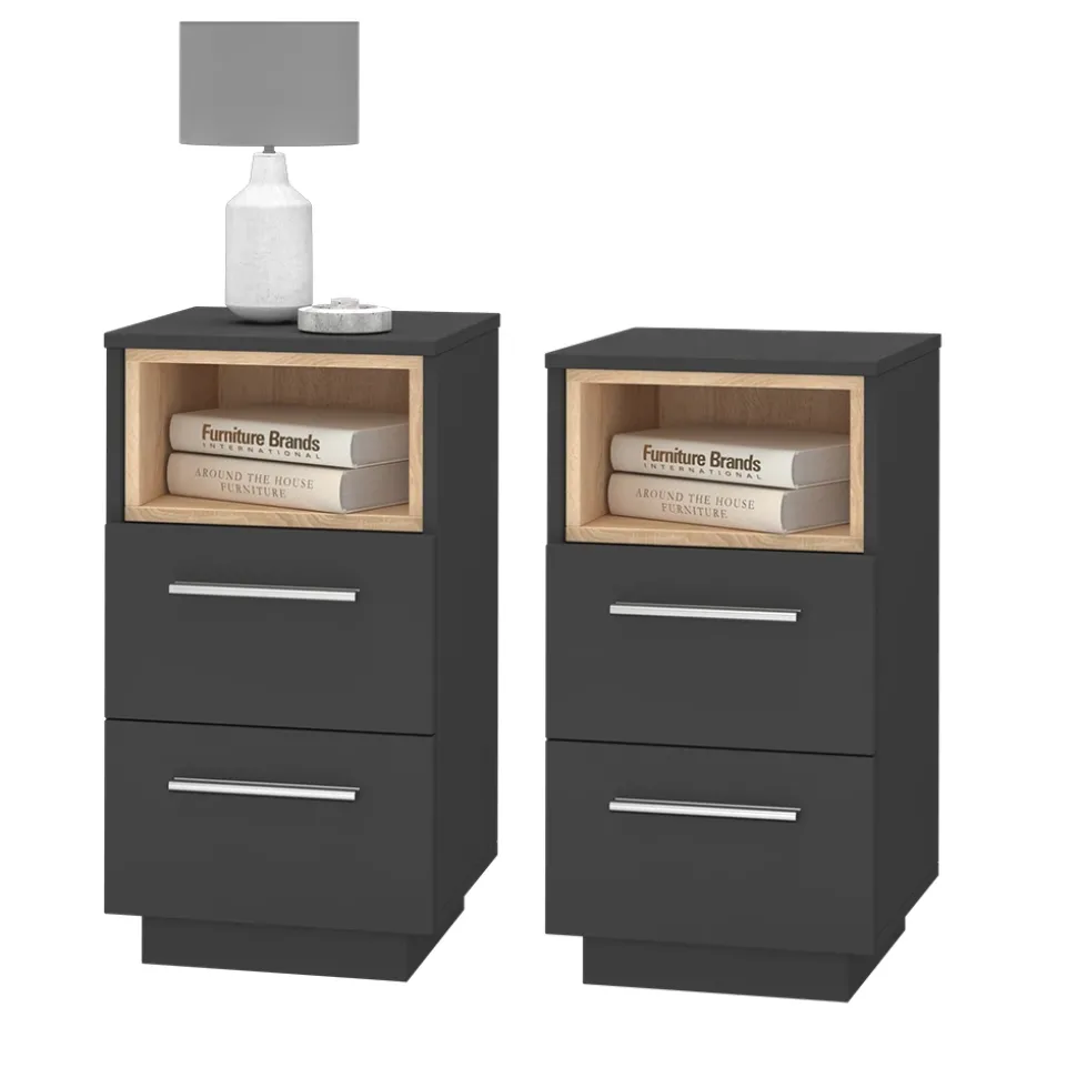 Der Nachttisch Beatrice ist ein wahres Multitalent. Er kann als Nachtschrank, Nachtkommode, Nachttischschrank oder Beistelltisch verwendet werden und bringt mit seinem eleganten Design eine stilvolle Note in jedes Schlafzimmer. Das offene Fach mit einer Holzdekoreinlage ist ideal für Bücher oder eine Lampe, während die soft-close-Schubladen genügend Platz für Ihre persönlichen Habseligkeiten bieten. Die farbkombination aus anthrazit und Sonoma-Eiche macht diesen Nachttisch zu einem wahren Blickfang. Er ist ein Teil der Beatrice-Serie und bietet eine Vielzahl von weiteren Möglichkeiten, um Ihr Zuhause in eine stilvolle Oase zu verwandeln. Gönnen Sie sich den Nachttisch Beatrice und schenken Sie Ihrem Schlafzimmer eine besondere Note.