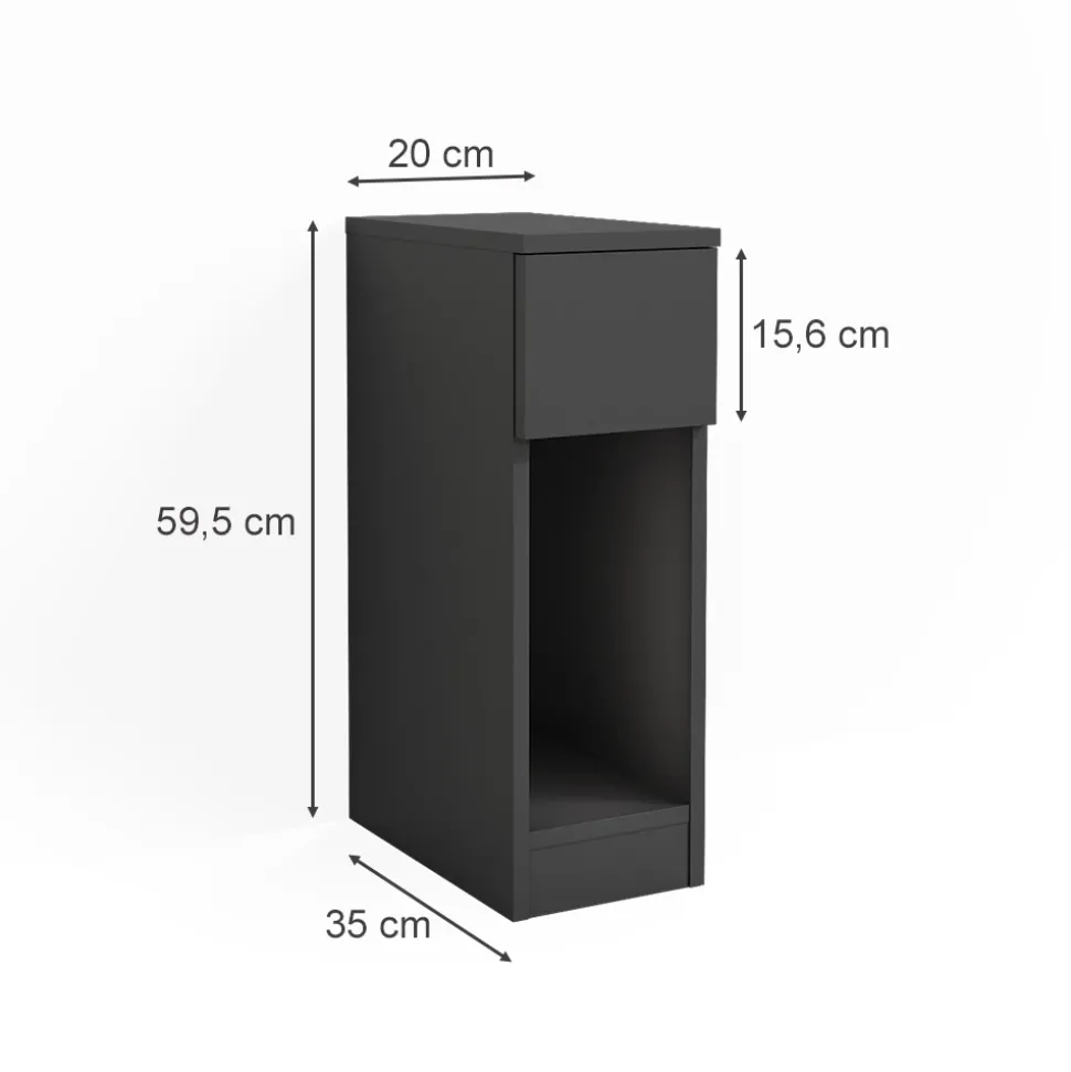 - MAßE: Der Nachtschrank hat eine Breite von 20 cm, eine Höhe von 59,5 cm und eine Tiefe von 35 cm. Alle detaillierten Größen sind auf den Fotos angegeben.