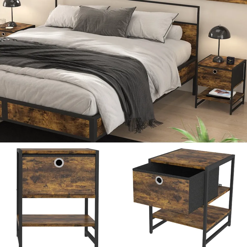 - Eine praktische Nachtkommode mit offener Ablage und Schublade – perfekt für platzsparendes Aufbewahren und schnellen Zugriff.