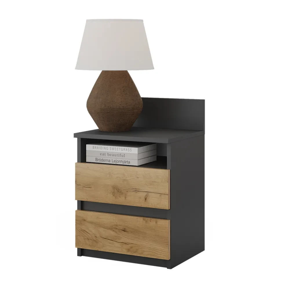 Entdecken Sie die praktische Organisation mit 2 geräumigen Schubfächern und einer großzügigen Ablagefläche für all Ihre persönlichen Gegenstände. Unser Nachttisch vereint Ästhetik und Eleganz – perfekt abgestimmt auf jeden Einrichtungsstil, um Ihr Schlafzimmer zu verschönern. Dank der klaren Anleitung gestaltet sich der Zusammenbau schnell und unkompliziert. Genießen Sie die Leichtigkeit der Reinigung. Die hochwertige Oberfläche ermöglicht eine unkomplizierte Pflege für langanhaltende Freude.