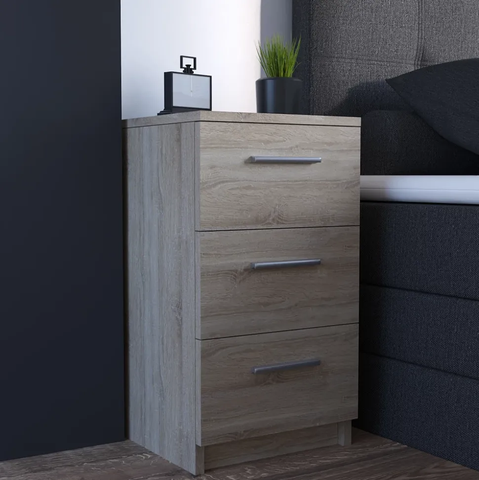 - Die Nachtkommode bietet mit 3 Schubladen ausreichend Stauraum und passt ideal zu einem Boxspringbett. Ein praktisches Möbelstück für das Schlafzimmer.
