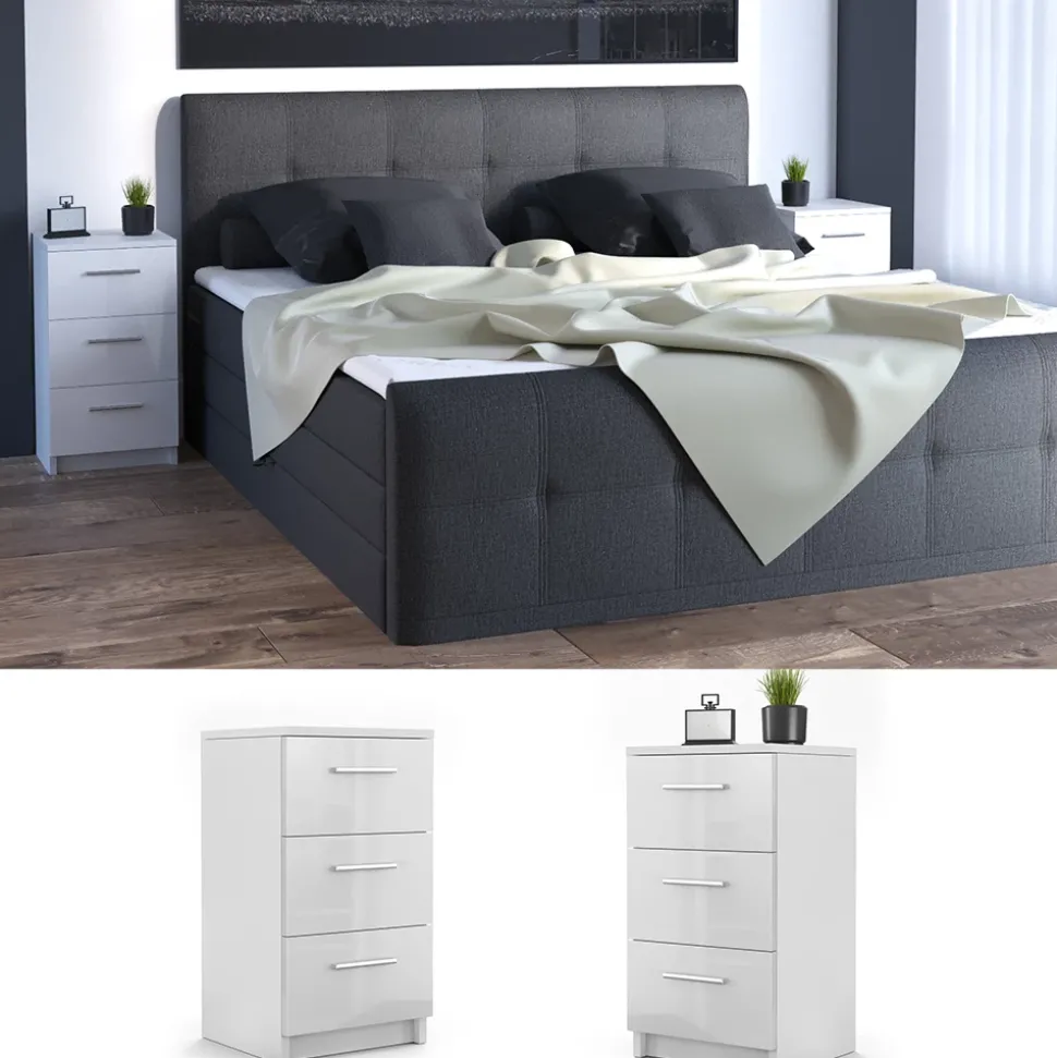 - Die Nachtkommode bietet mit 3 Schubladen ausreichend Stauraum und passt ideal zu einem Boxspringbett. Ein praktisches Möbelstück für das Schlafzimmer.