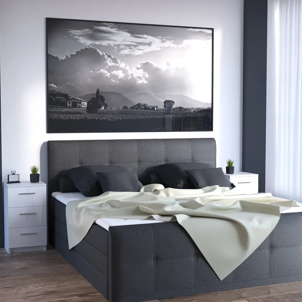 Der Nachttisch für Boxspringbetten ist ein Must-have für jeden, der das Schlafzimmer stilvoll und funktional gestalten möchte. Der moderne Stil und die drei geräumigen Schubladen bieten reichlich Platz für Ihre wichtigsten Gegenstände, wie Bücher, Ladekabel oder eine Nachttischlampe. Der Nachtschrank ist Teil einer Serie von anderen Optionen, die Sie perfekt kombinieren können, um das Gesamtbild Ihres Schlafzimmers zu verbessern. Aber nicht nur das Aussehen zählt, der Nachttisch für Boxspringbetten ist auch äußerst praktisch. Ob Sie es für Ihre Lesebrille oder Ihren Wecker nutzen, der Nachttisch ist ein unerlässlicher Teil Ihres Schlafzimmers. Bestellen Sie Ihren neuen Nachttisch und verbessern Sie Ihre Erfahrung im Schlafzimmer.