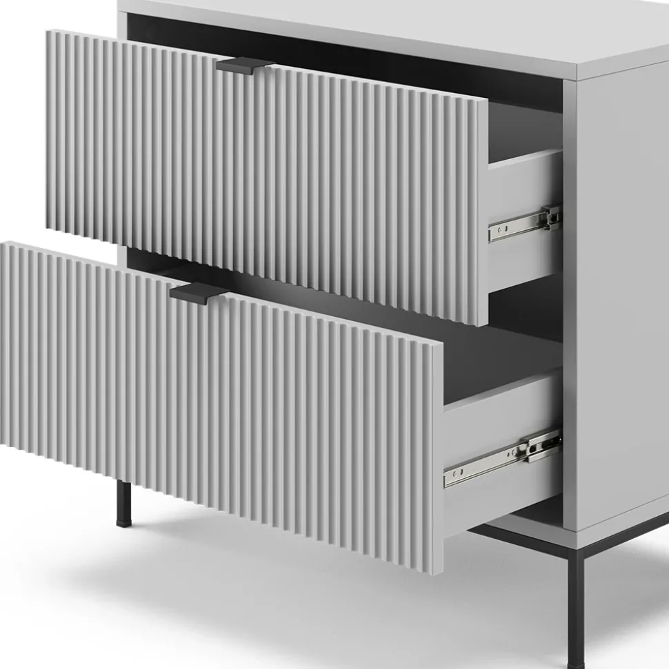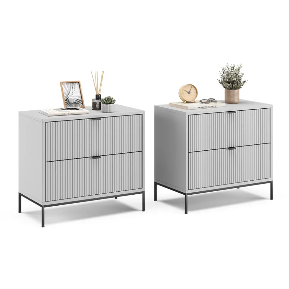Das Nachtschränke-2er Set vereint stilvolles Design und praktische Funktionalität. Schaffen Sie eine symmetrische Atmosphäre in Ihrem Schlafzimmer. Die Schubladen bieten viel Stauraum für persönliche Gegenstände und schaffen Ordnung im Schlafzimmer. Die pflegeleichte Oberfläche ermöglicht Ihnen eine einfache Reinigung und langanhaltende Schönheit. Die Nachttische lassen sich perfekt mit anderen Möbeln der Eliza-Serie kombinieren und sorgen für eine einheitliche und stilvolle Raumgestaltung.
