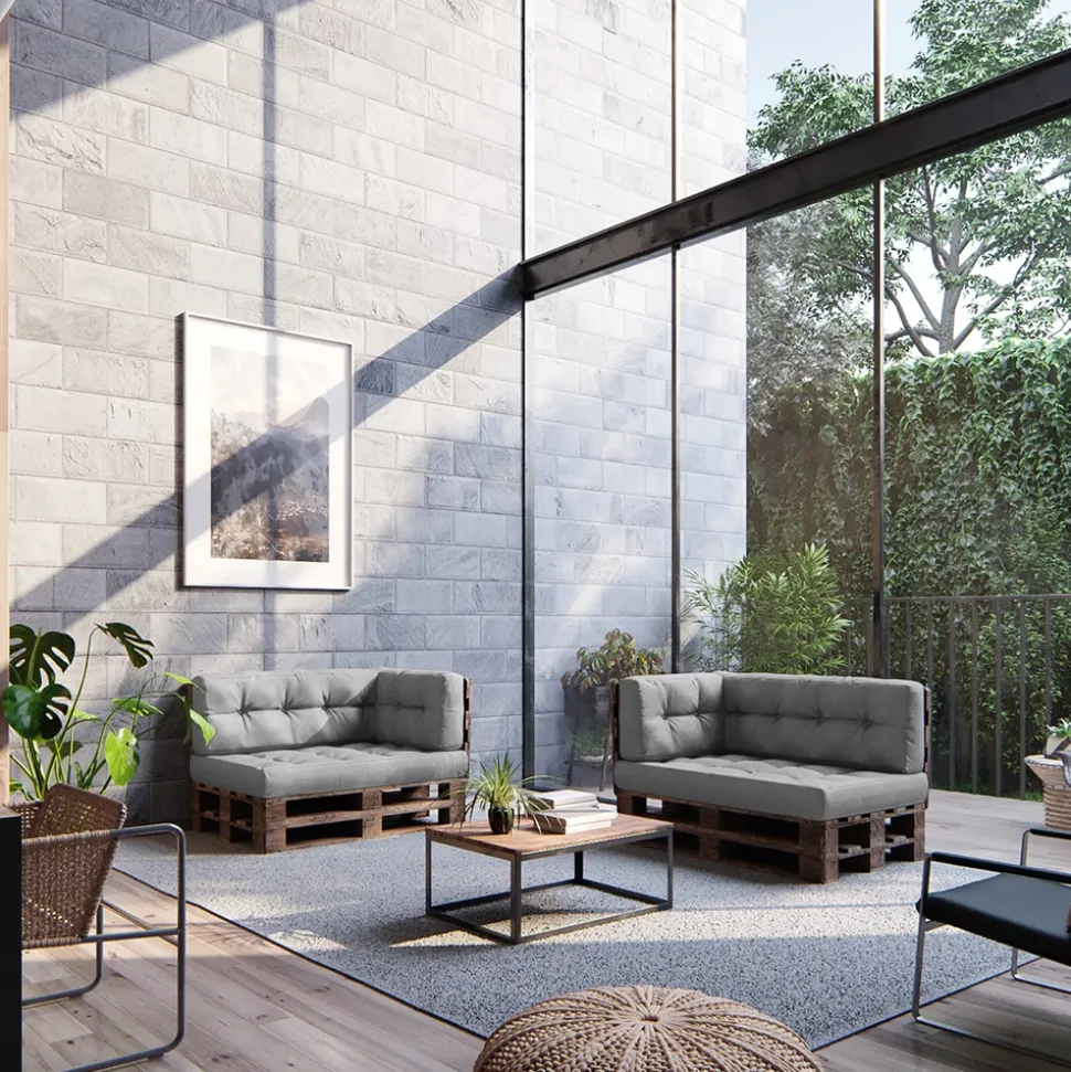 Mit unserem Palettenkissen-Set, verwandeln Sie Ihre Palettenmöbel in eine komplette Outdoor-Oase. Ob als Palettensofa, Palettenpolster oder einfach als gemütliche Sitzfläche – mit unseren hochwertigen Kissen ist alles möglich. Das attraktive Design und die weiche, langlebige Qualität machen diese Kissen zu einem Must-Have für alle, die ihre Terrasse oder Balkon in eine Wohlfühloase verwandeln möchten. Gönnen Sie sich und Ihren Gästen ein bequemes Sitzerlebnis und gestalten Sie Ihre Palettensofas in interessante und individuelle Designs. Machen Sie Ihre Outdoor-Zeit zu einem Erlebnis und schaffen Sie mit unseren Kissen eine stimmige Atmosphäre. Holen Sie sich jetzt unser Palettenkissen-Set und lassen Sie sich von Ihrer neuen Wohlfühloase verzaubern.