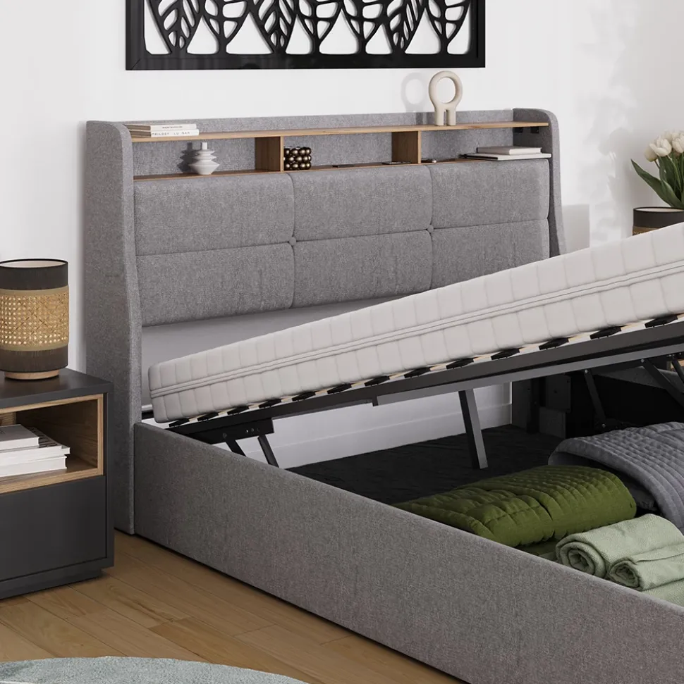 Das Polsterbett Christin ist nicht nur ein stilvolles Doppelbett, sondern auch ein praktisches Funktionsbett mit integriertem Stauraum. Dank des Bettkastens können Sie Ihr Schlafzimmer ordentlich und aufgeräumt halten. Das Highlight dieses Bettes sind jedoch die 2 LED-Streifen in warmweiß mit 4 Helligkeitsstufen und Timerfunktion sowie der USB-Anschluss. Mit der Fernbedienung können Sie die Beleuchtung ganz nach Ihren Wünschen einstellen und sogar einen Nachtmodus aktivieren. Der Lattenrost verfügt zudem über eine Klappfunktion, die das Aufbewahren von Bettwäsche oder anderen Gegenständen noch einfacher macht. Gönnen Sie sich mit dem Funktionsbett Christin nicht nur einen erholsamen Schlaf, sondern auch ein modernes und praktisches Möbelstück für Ihr Zuhause.