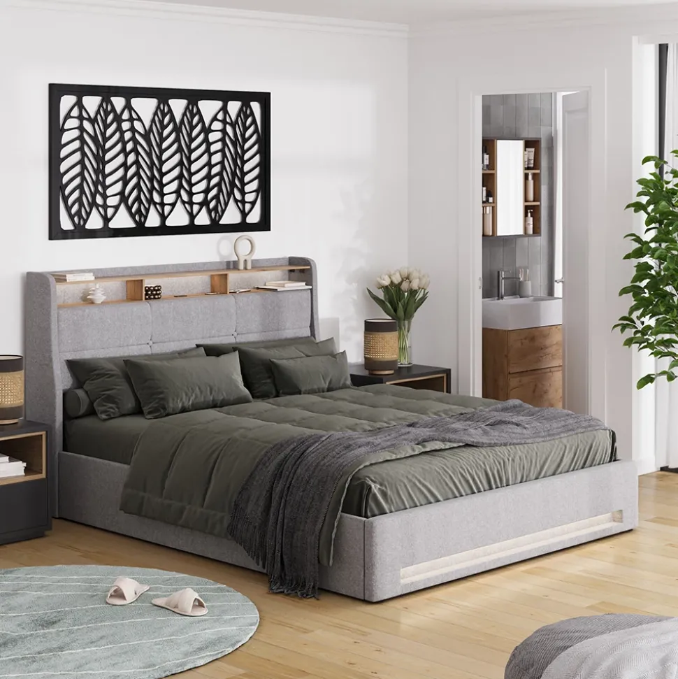 - LIEFERUMFANG: 1x Bett, 1x USB Steckdose, 2x LED Streifen, 1x Fernbedienung, Matratze (Dekoration nicht enthalten)