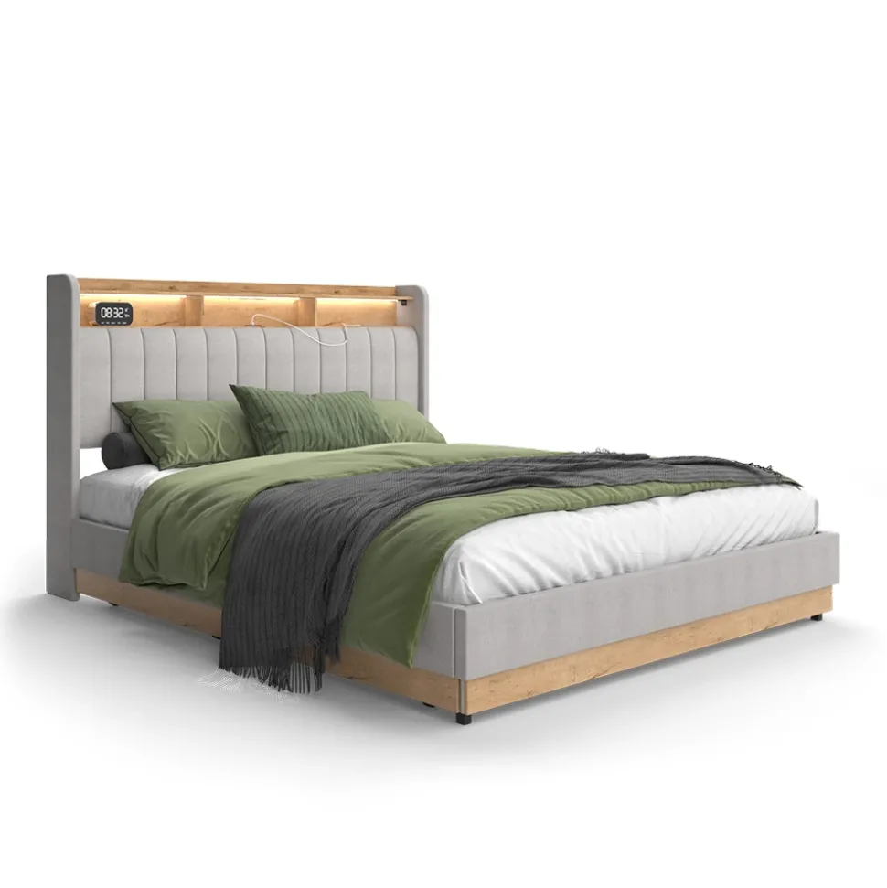 Das Bett Nura kombiniert modernes Design mit natürlicher Eleganz. Mit seiner stabilen Konstruktion und der harmonischen Farbkombination bietet es einen stilvollen und komfortablen Schlafplatz.