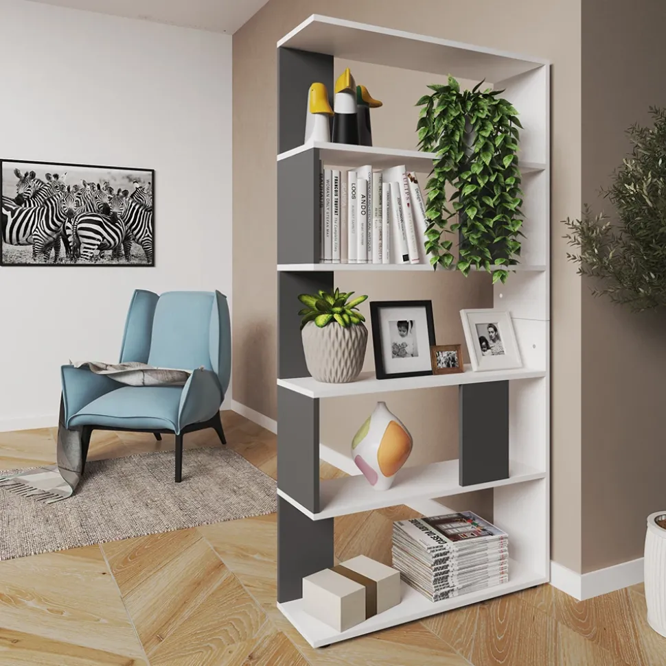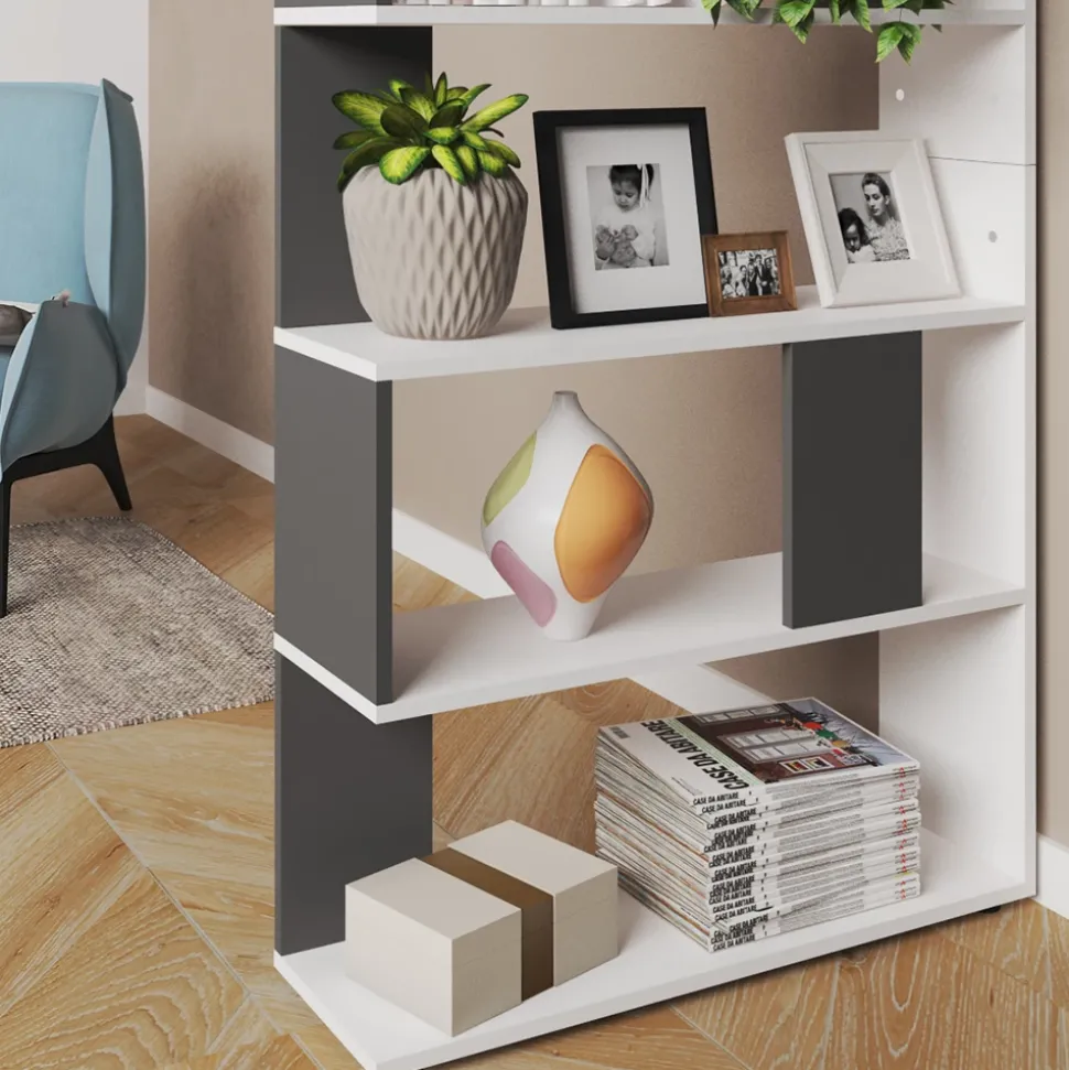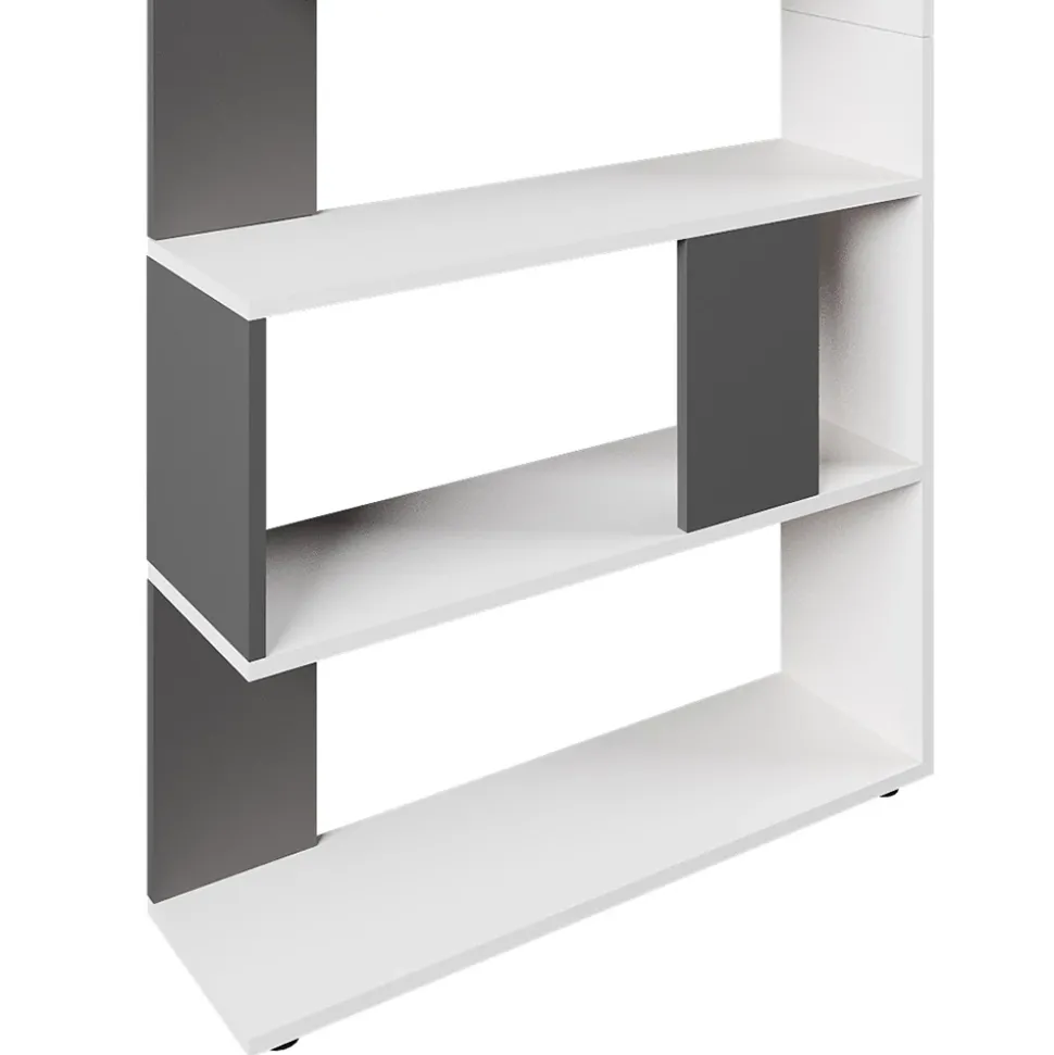 Dieser Raumteiler ist nicht nur funktional, sondern auch ein Hingucker in jedem Raum. Mit seinen 5 offenen Ablageflächen bietet er reichlich Stauraum und dient zugleich als raumtrennendes Element, um den Raum perfekt zu organisieren. Das Stufenregal eignet sich besonders gut als Bücherregal, um Ihre Lieblingsbücher und Gegenstände gekonnt in Szene zu setzen. Das funktionelle Design ermöglicht es, den Raumteiler gut mit anderen Möbelstücken zu kombinieren. Ob im Arbeitszimmer, Wohnzimmer oder Schlafzimmer – dieser offene Raumtrenner sorgt für ein harmonisches Ambiente. Entdecken Sie jetzt die Möglichkeiten und gestalten Sie Ihr Zuhause noch individueller.