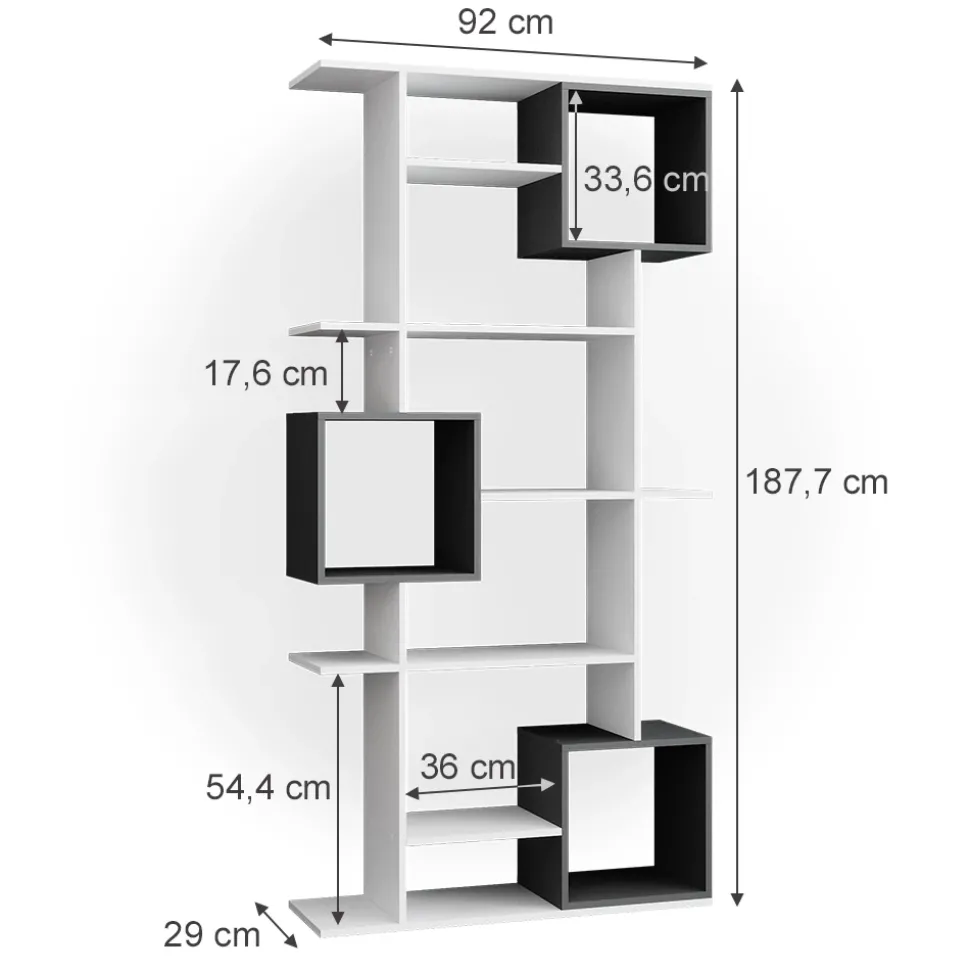 Unser Raumteiler ist nicht nur ein praktisches Möbelstück, sondern auch ein echter Blickfang in jedem Raum. Mit seinem offenen Design und den neun Ablageflächen bietet er nicht nur viel Stauraum, sondern auch die Möglichkeit, ihn als Bücherregal oder Würfelregal zu nutzen. Die Fachböden für 30×30 Kartons machen ihn zum perfekten Aufbewahrungsort für Spielzeug, Büroartikel oder DIY-Materialien. Durch sein funktionelles Design lässt sich unser Raumteiler hervorragend mit anderen Möbelstücken kombinieren und passt sich so flexibel den individuellen Wünschen und Bedürfnissen an. Ob im Wohnzimmer, im Büro oder im Kinderzimmer – unser Raumteiler setzt überall Akzente. Lassen auch Sie sich von seinem Charme begeistern!