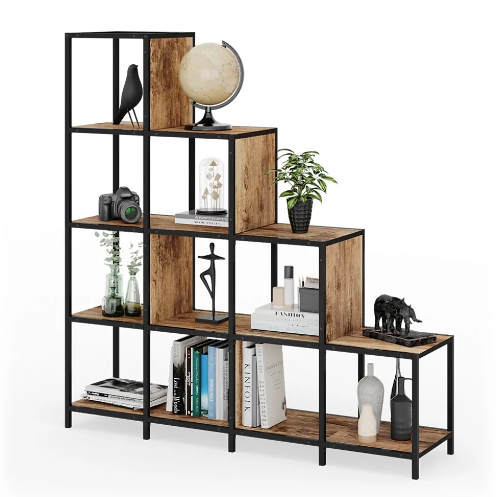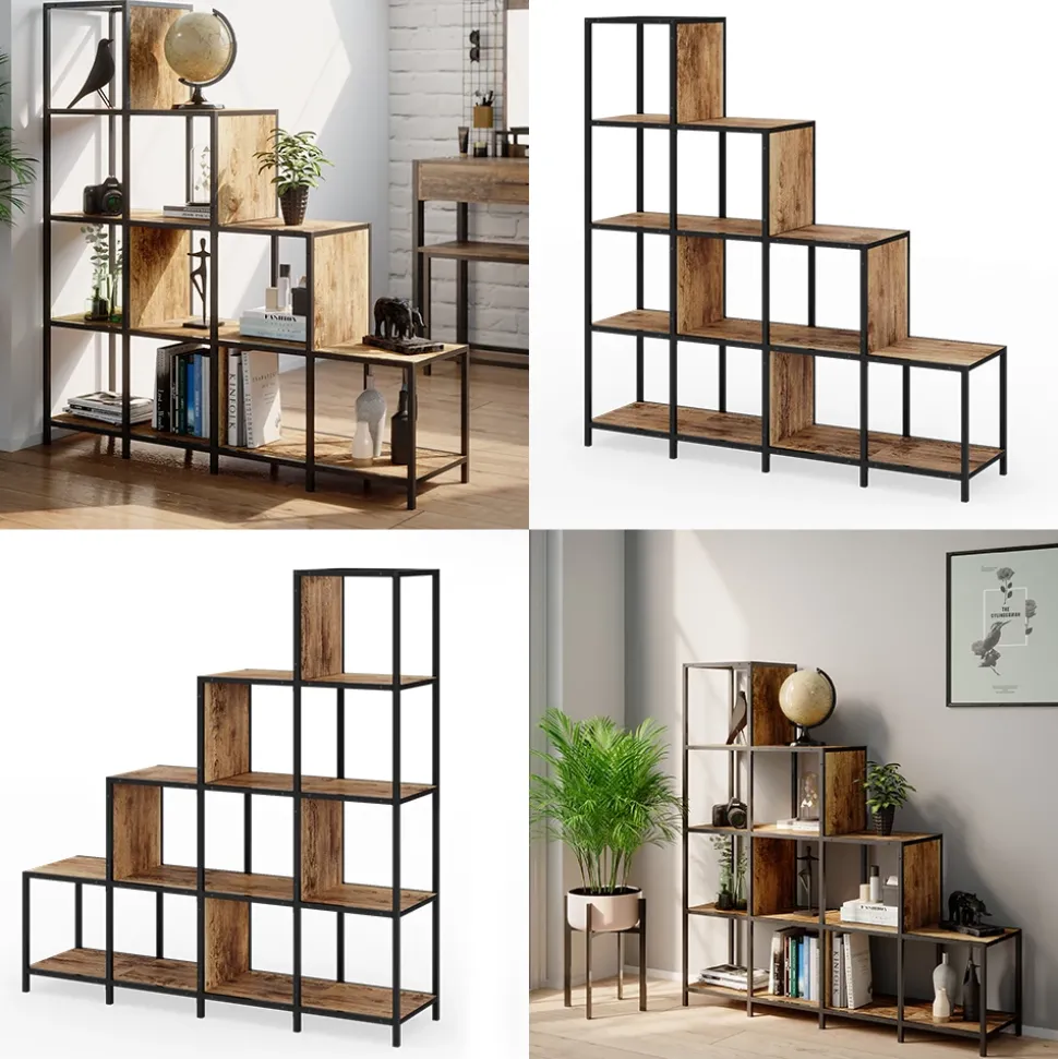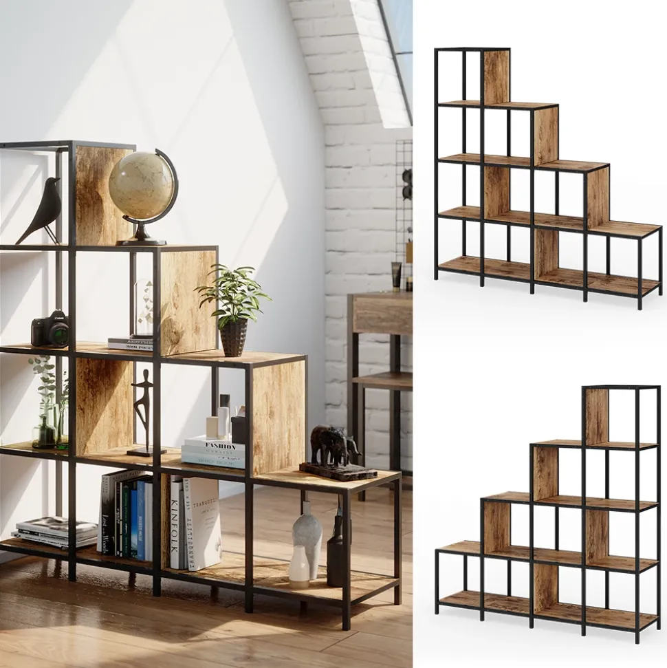 - Das Bücherregal stehend bietet 10 offene Ablageflächen für die Aufbewahrung von Büchern und Dekorationen. Es ist aus Metall gefertigt und hat eine leiterförmige Struktur.