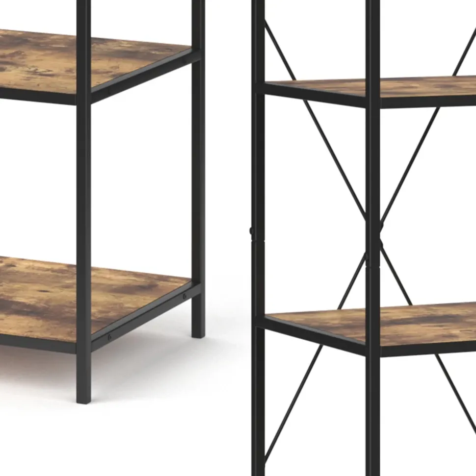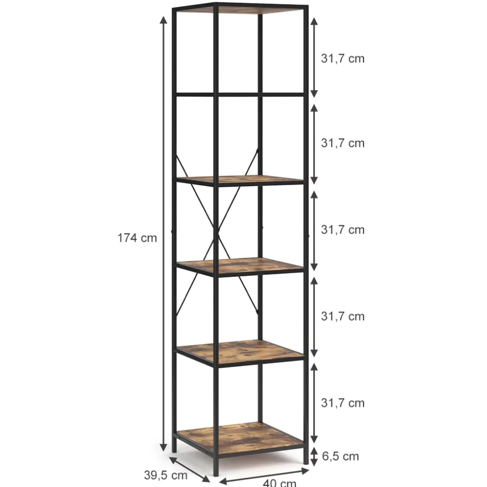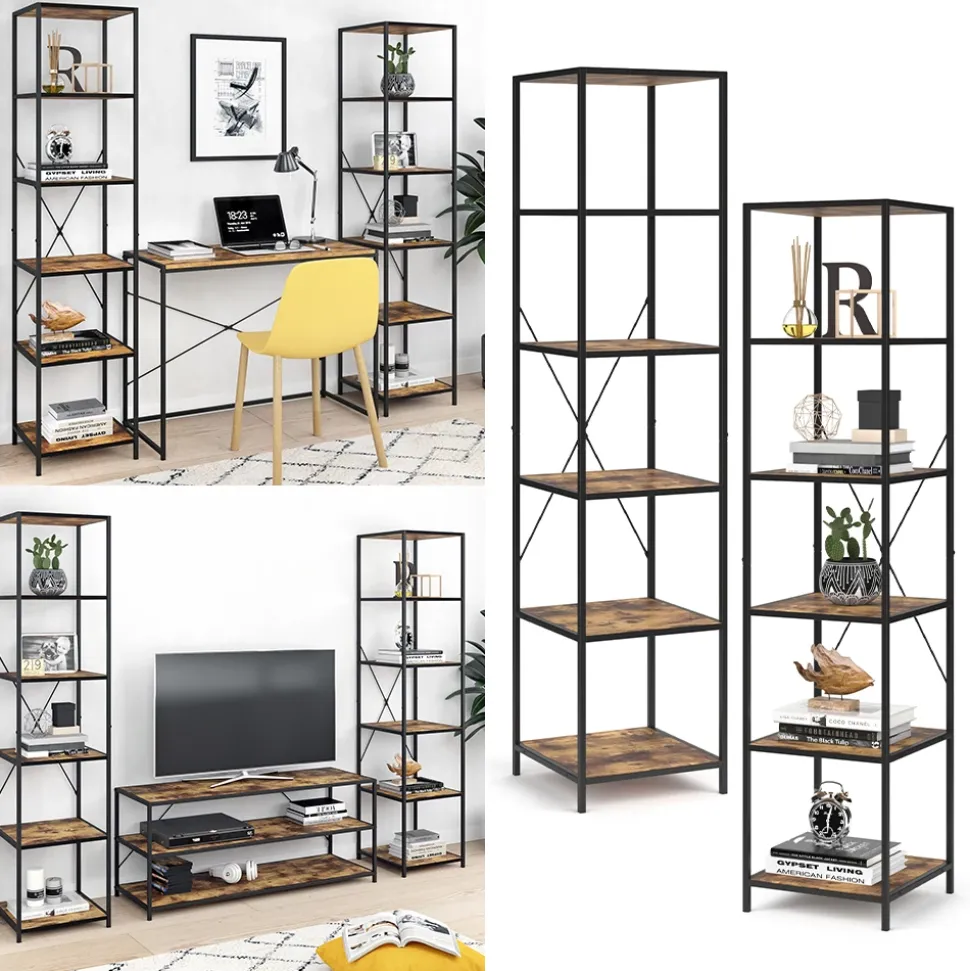 - Das Bücherregal stehend ist ein vielseitiges Möbelstück mit fünf offenen Ablagen und einem robusten Metallrahmen.