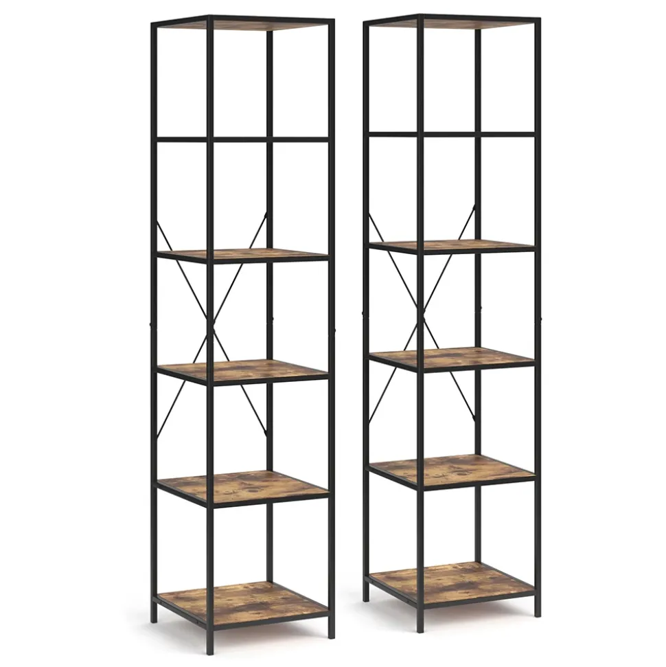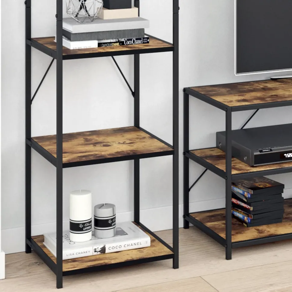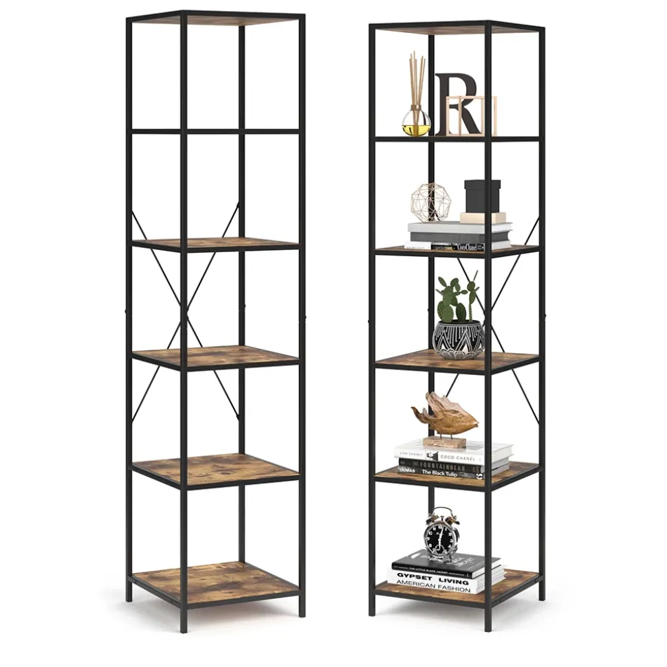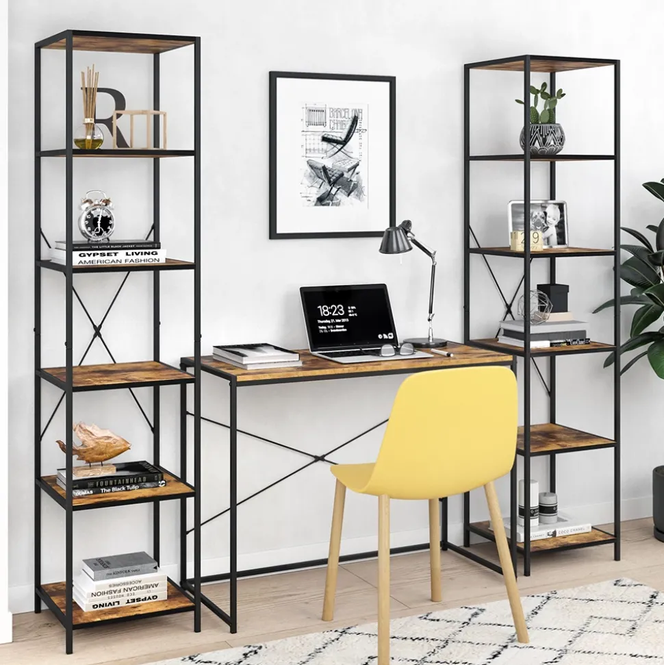 - Das Bücherregal stehend ist ein vielseitiges Möbelstück mit fünf offenen Ablagen und einem robusten Metallrahmen.