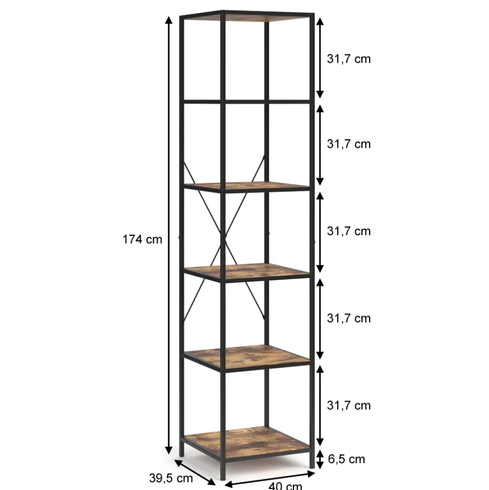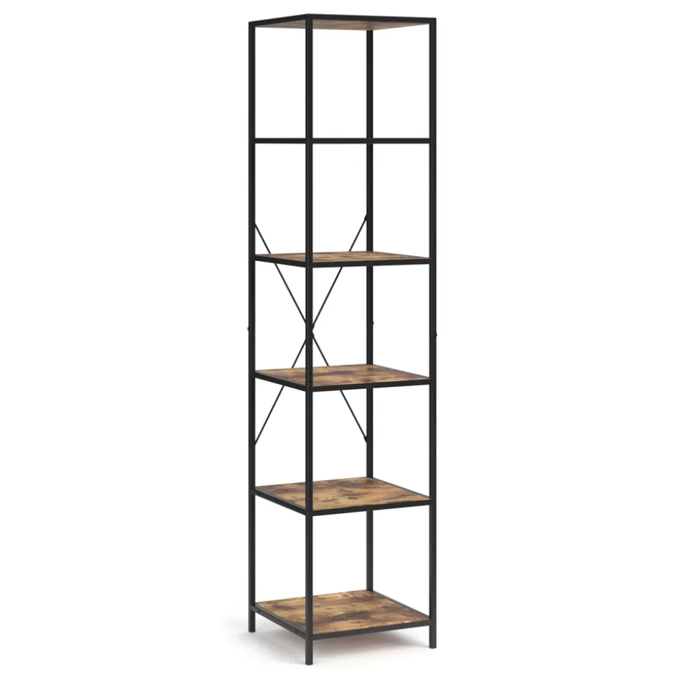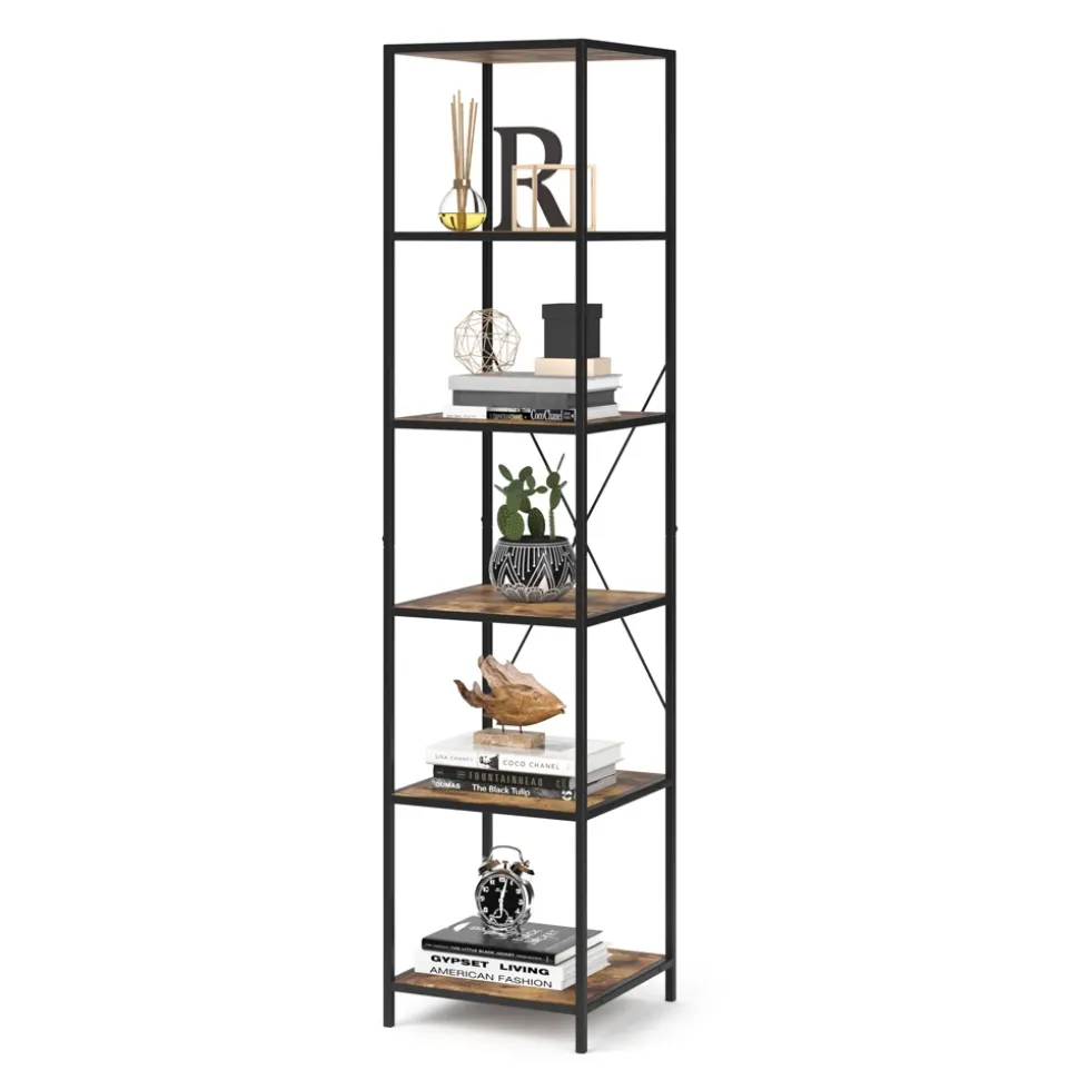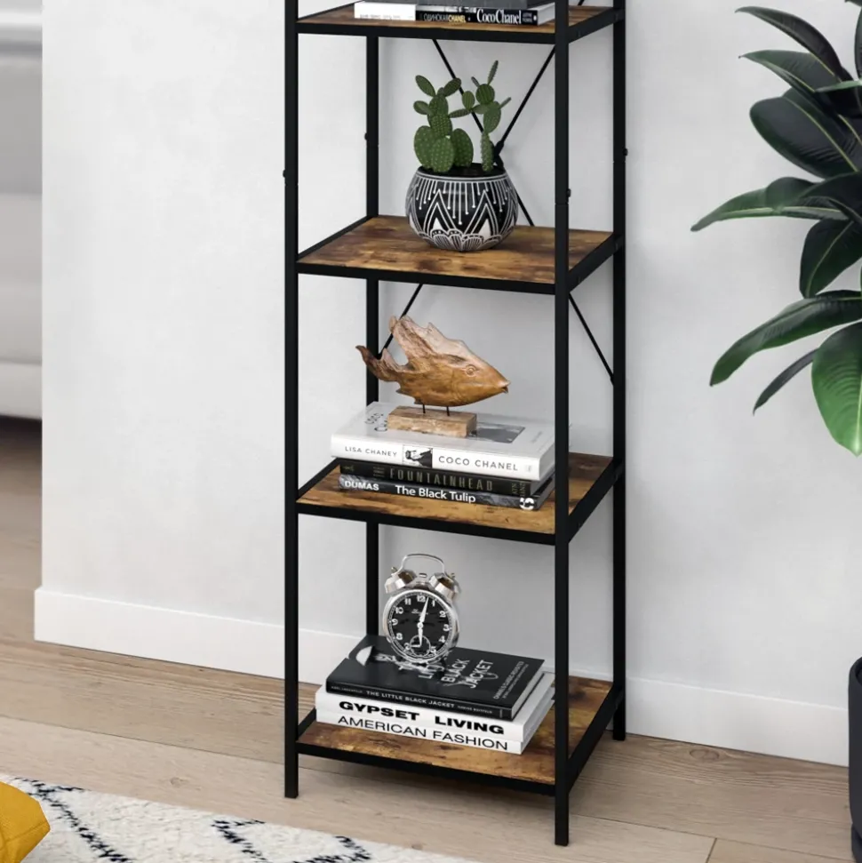 - Das Bücherregal stehend ist ein vielseitiges Möbelstück mit fünf offenen Ablagen und einem robusten Metallrahmen.