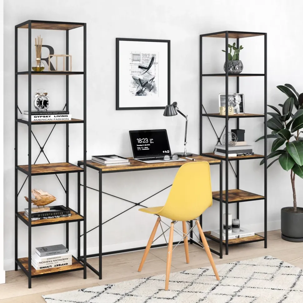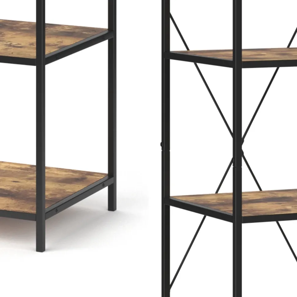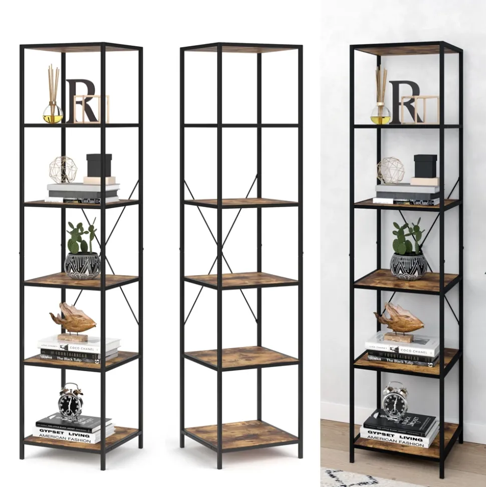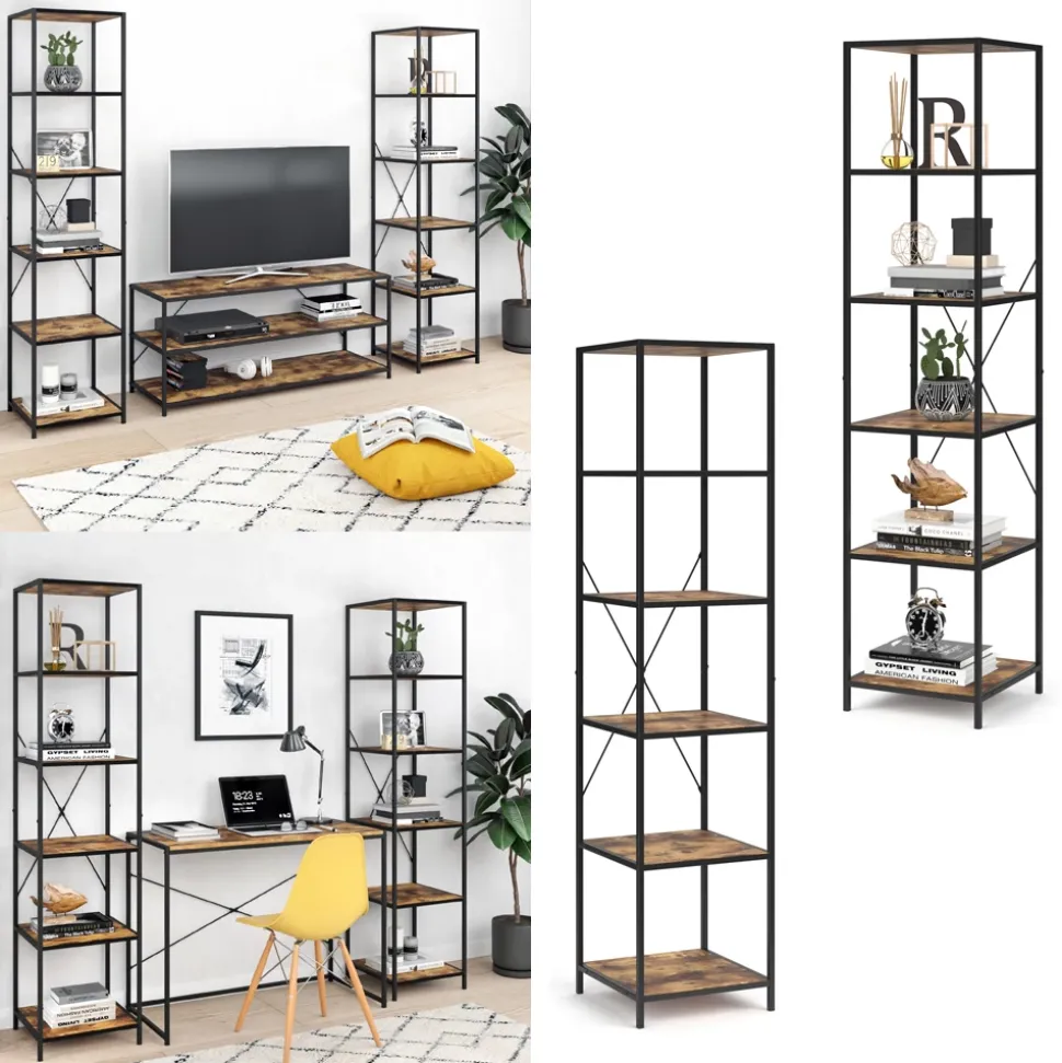 - Das Bücherregal stehend ist ein vielseitiges Möbelstück mit fünf offenen Ablagen und einem robusten Metallrahmen.