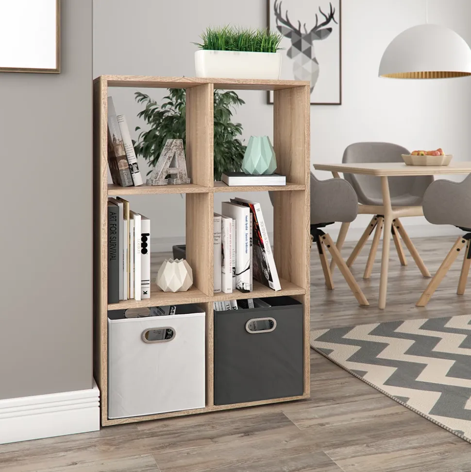 - Dieses stehende Bücherregal bietet 6 offene Ablagen und Fächer für 30×30 Kartons und sorgt somit für reichlich Stauraum.