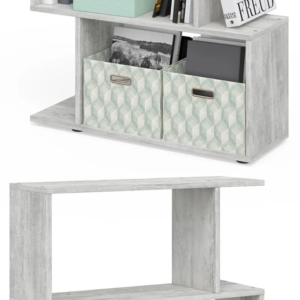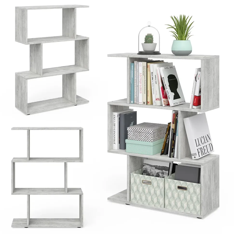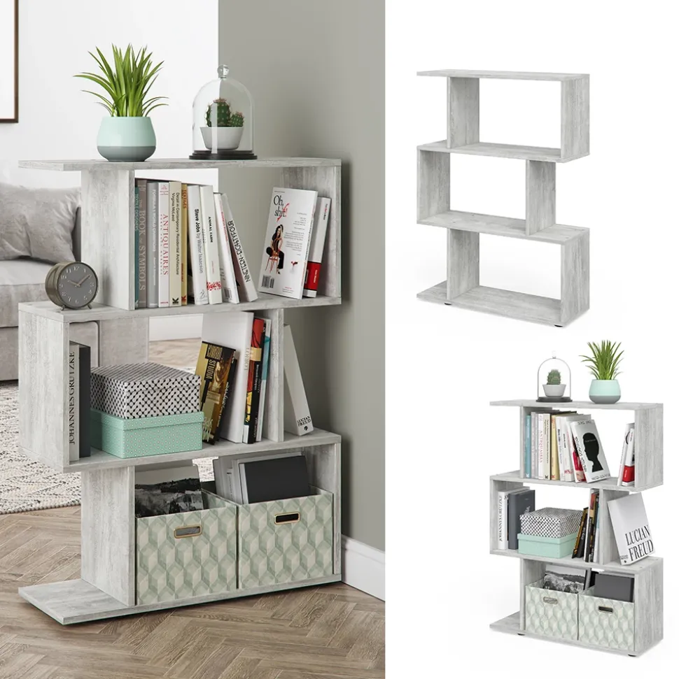 - Das stehende Bücherregal Regal bietet dank der zickzack-Form drei offene Ablagen für Bücher und Dekoartikel und kann horizontal oder vertikal eingesetzt werden.