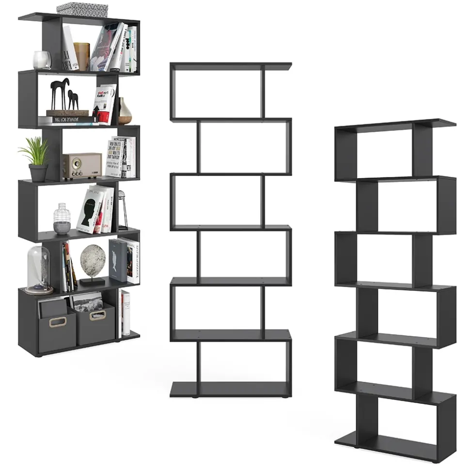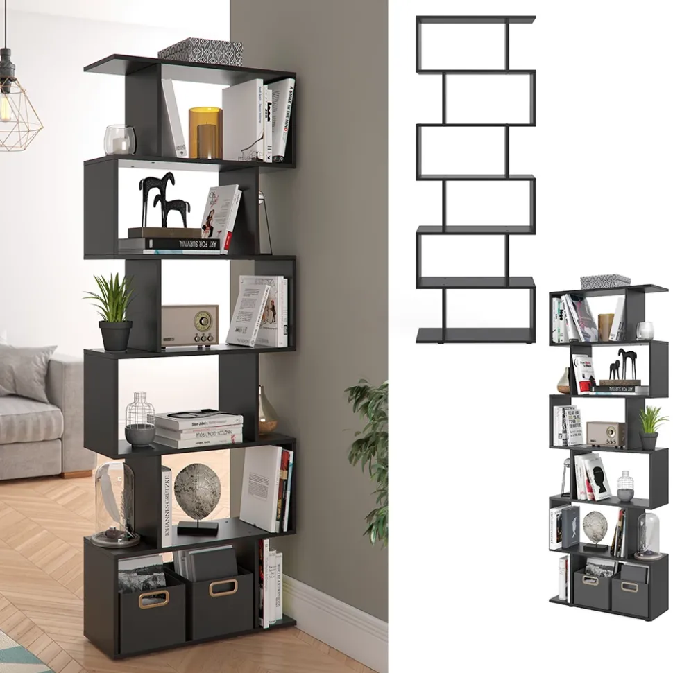 - Das stehende Bücherregal Regal bietet 6 offene Ablageflächen in zickzack-Form für eine horizontale oder vertikale Nutzung.