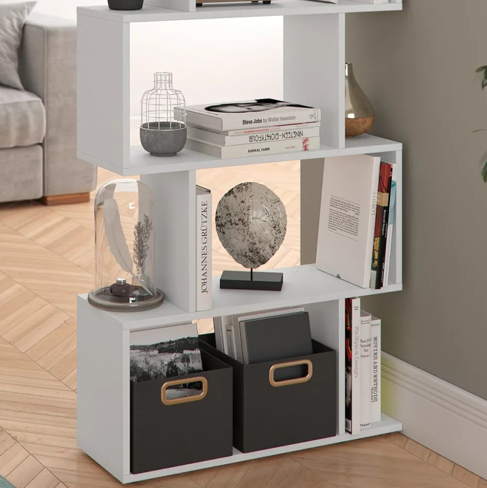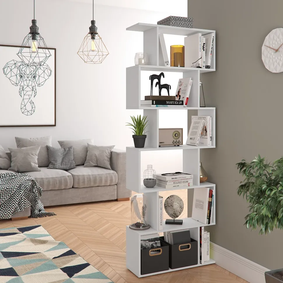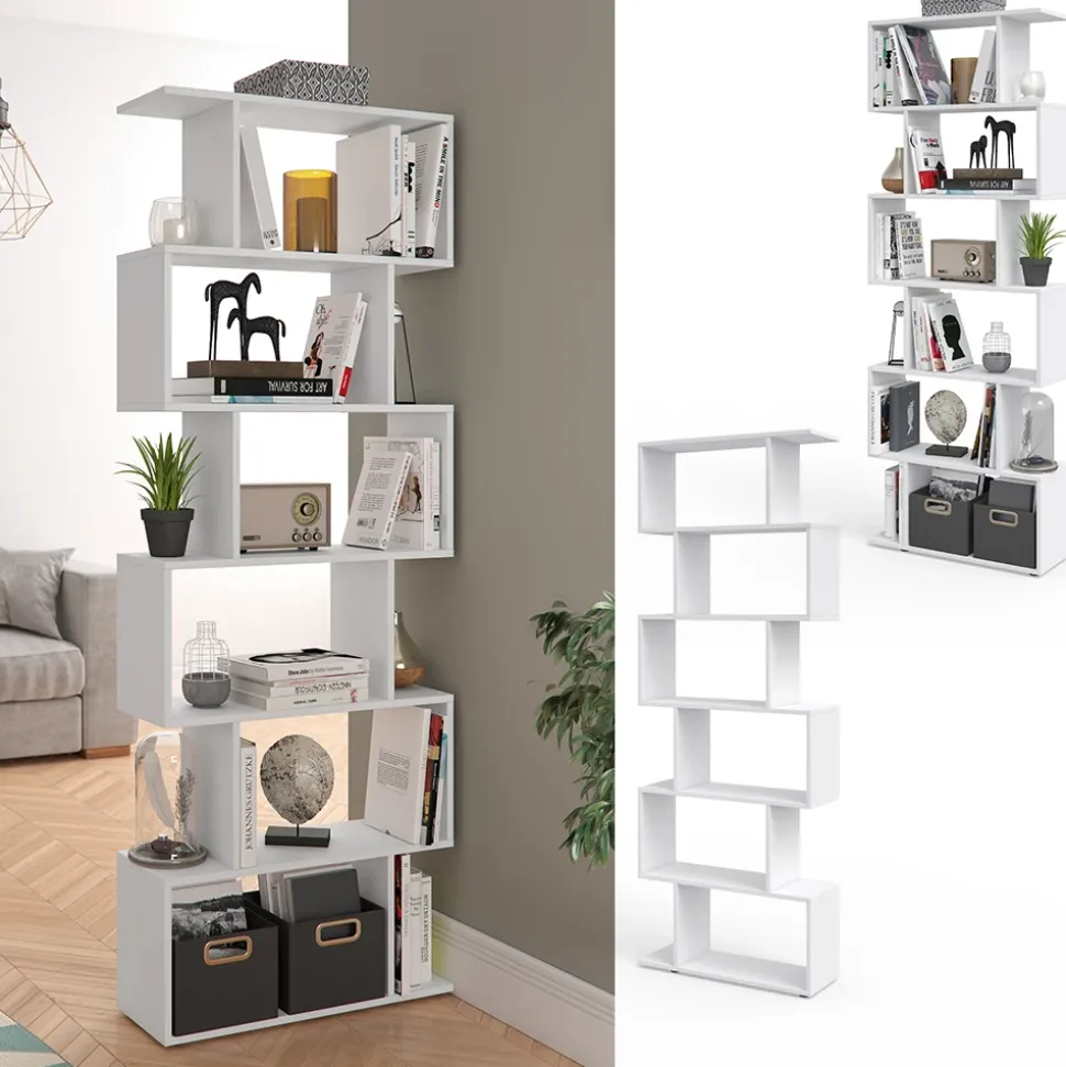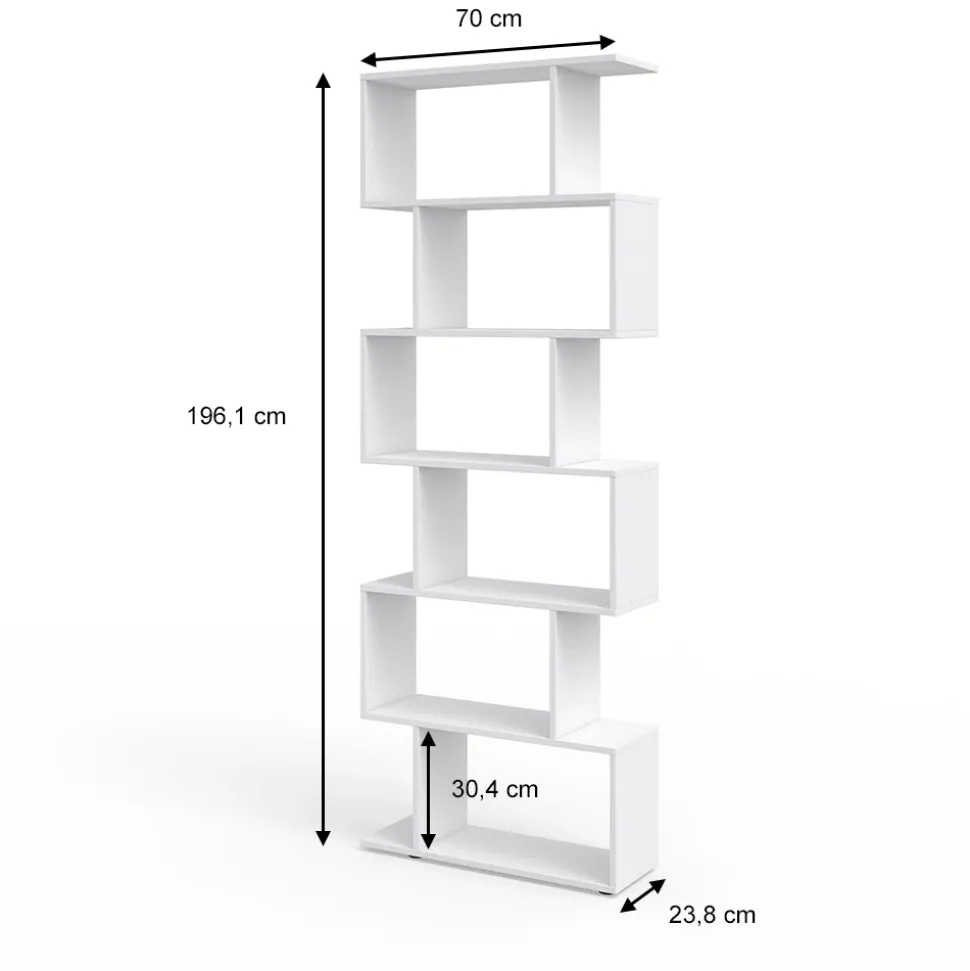 - Das stehende Bücherregal Regal bietet 6 offene Ablageflächen in zickzack-Form für eine horizontale oder vertikale Nutzung.