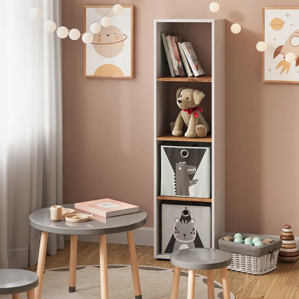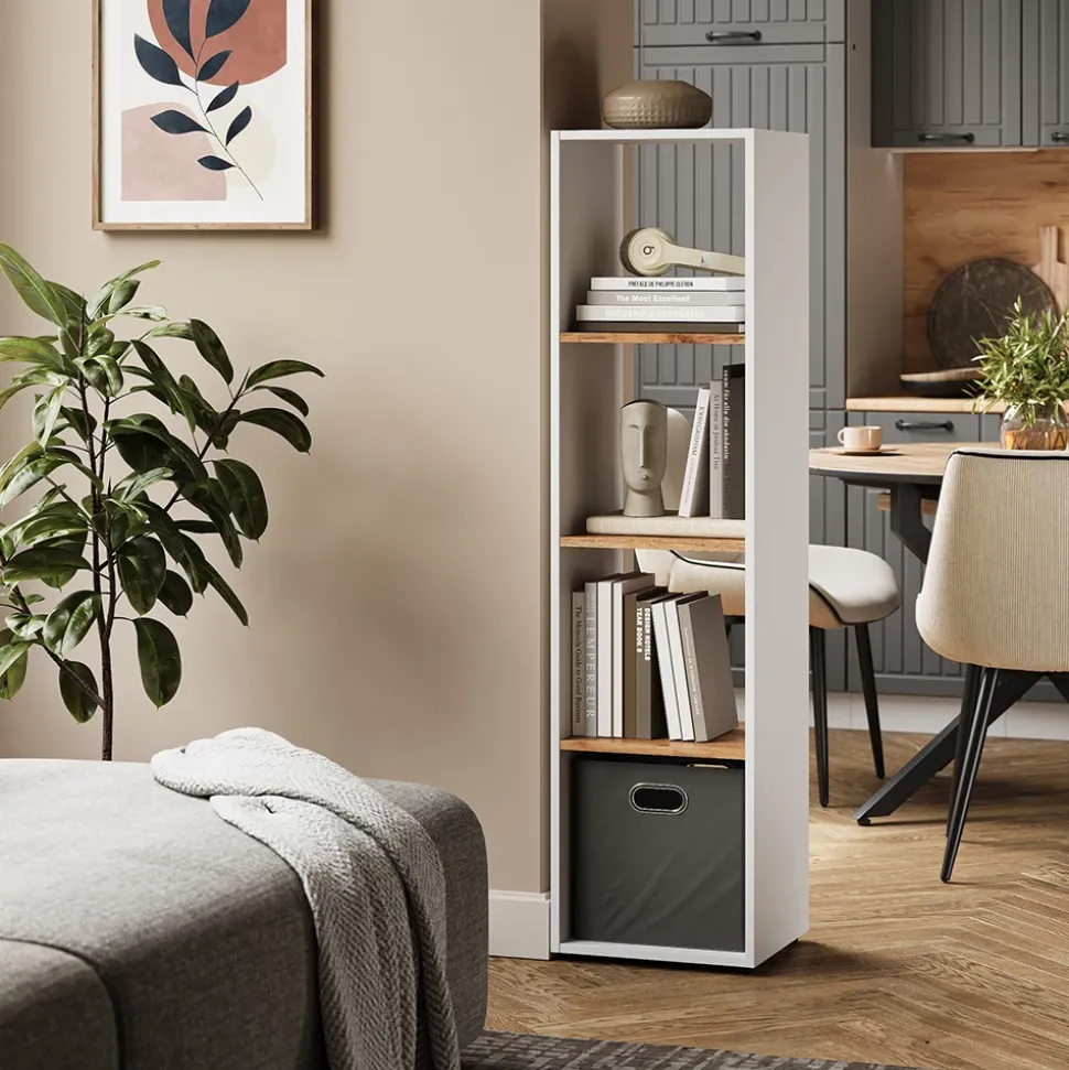 - Das stehende Bücherregal und bietet Platz für 30×30 Kartons. Mit 4 offenen Regalen schafft es genügend Stauraum für Bücher und vieles mehr.