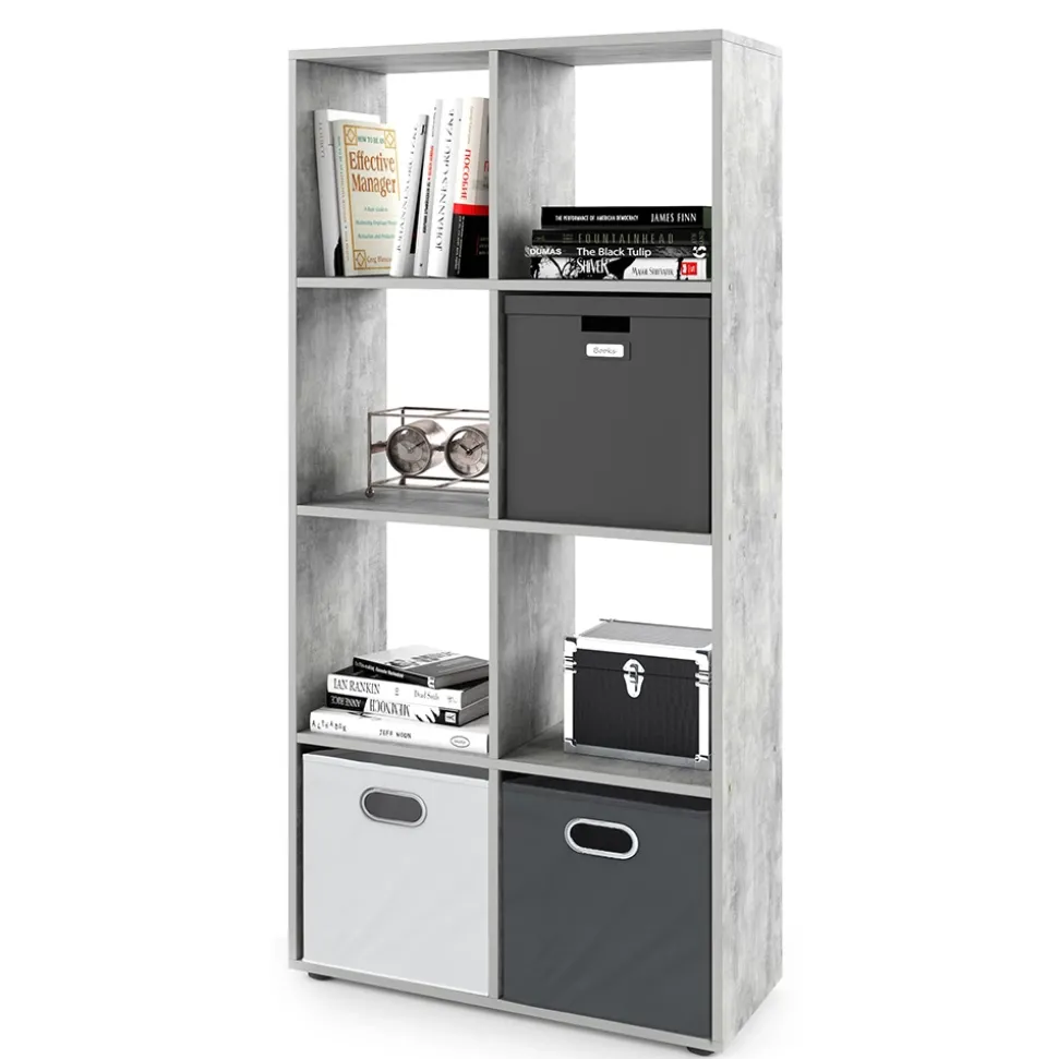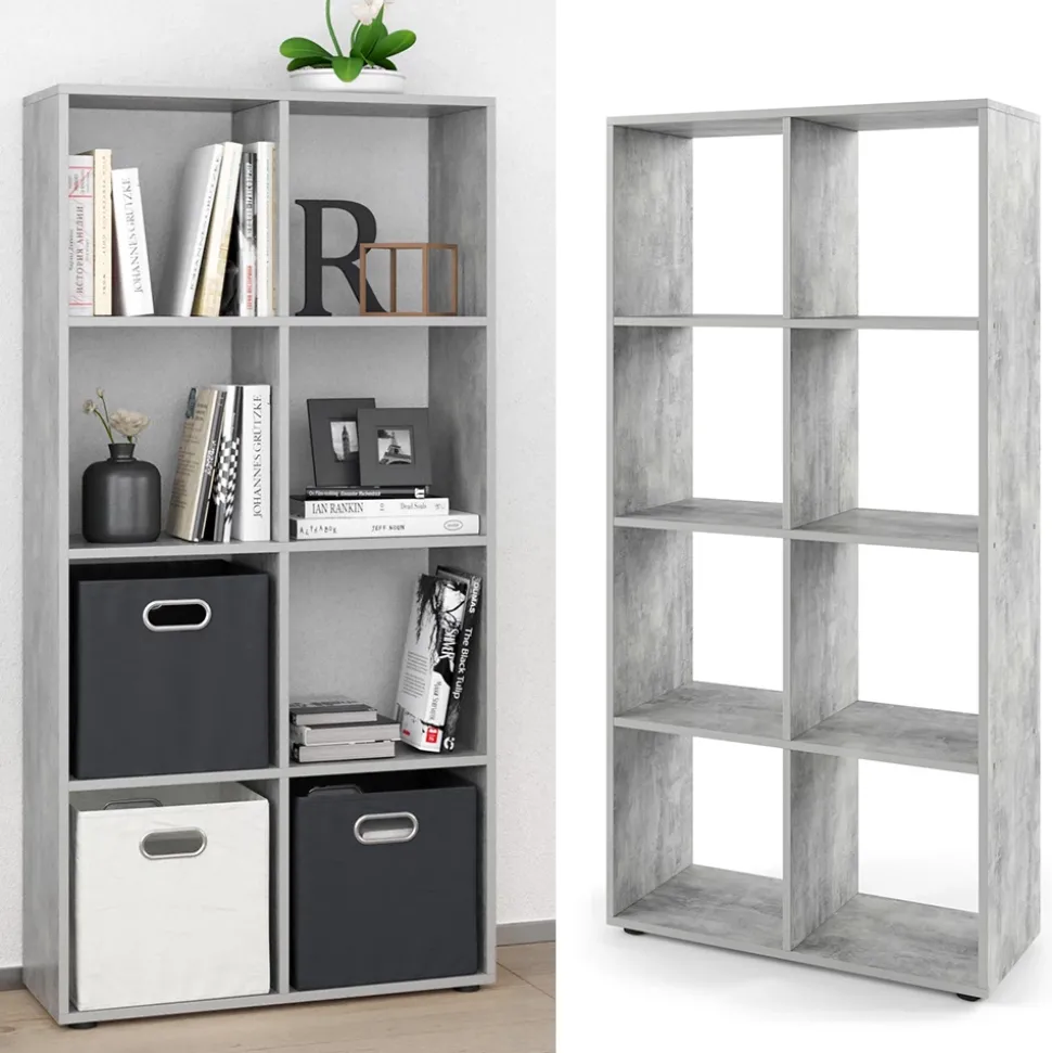 - Das stehende Bücherregal bietet 8 offene Regale und Ablagen für 30×30 Kartons und kann auch als Raumteiler verwendet werden.