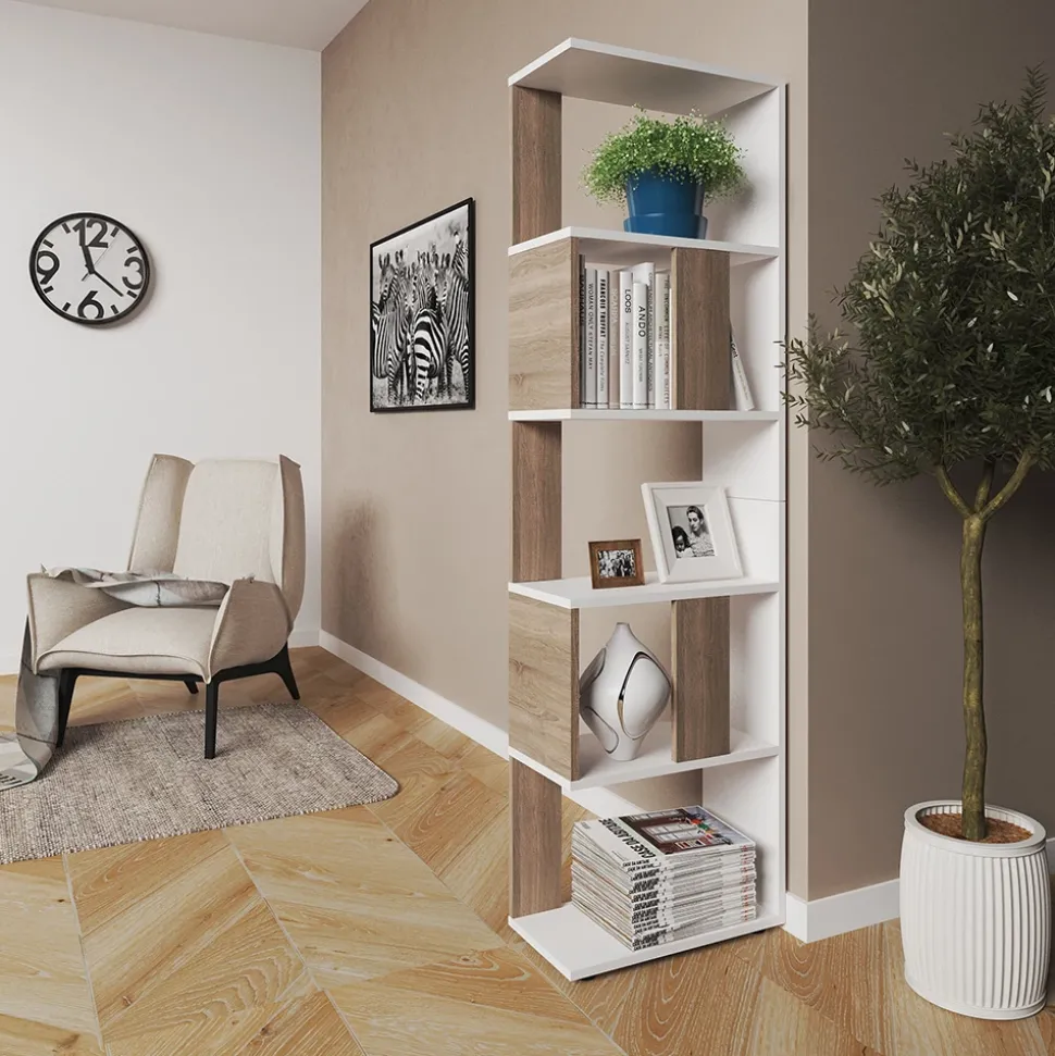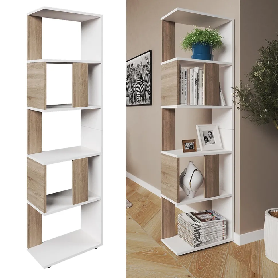 - Das stehende Bücherregal bietet mit 5 offenen Ablageflächen genügend Stauraum und fungiert als Raumtrennung für eine visuelle Strukturierung.