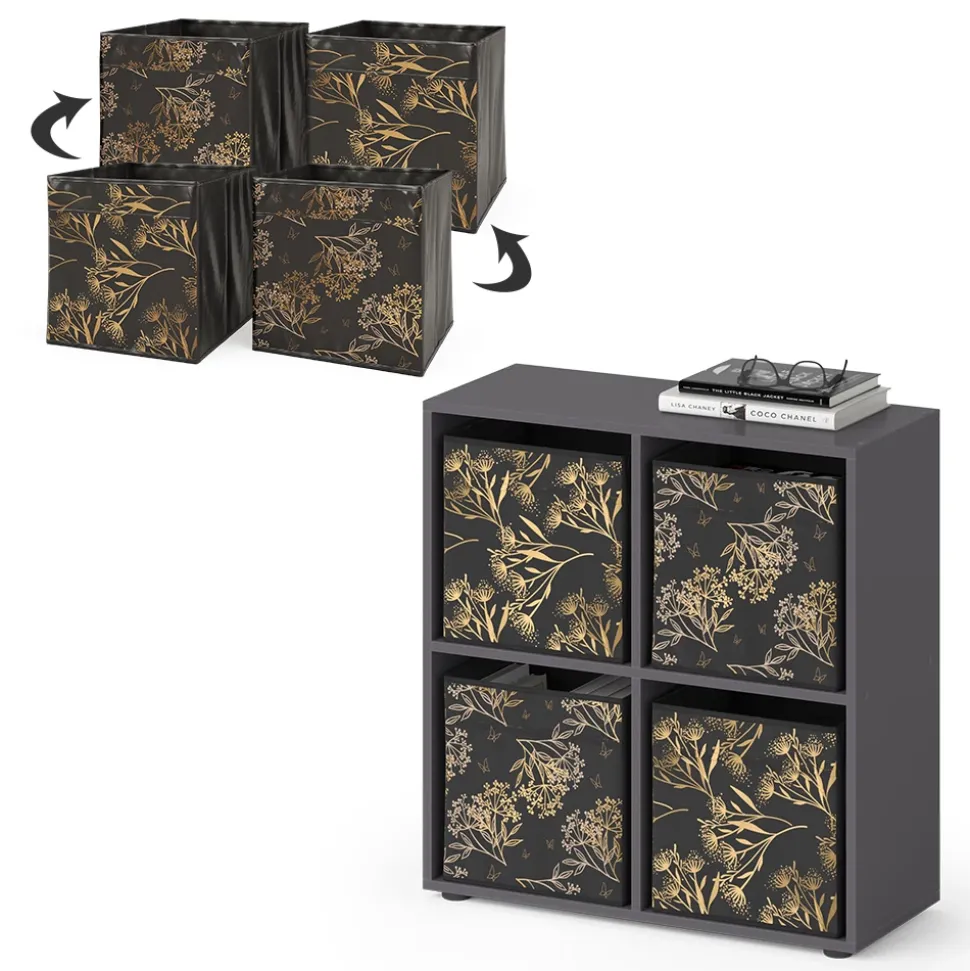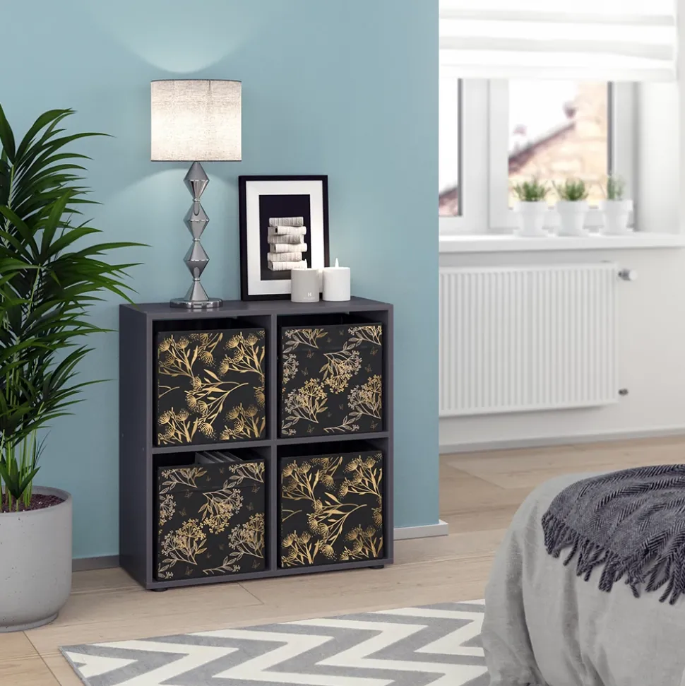 - Das stehende Bücherregal Tetra, bietet 4 offene Ablagen und Fächer für 30×30 Kartons in einer kubischen Form. Perfekt für Bücher und Aufbewahrung.