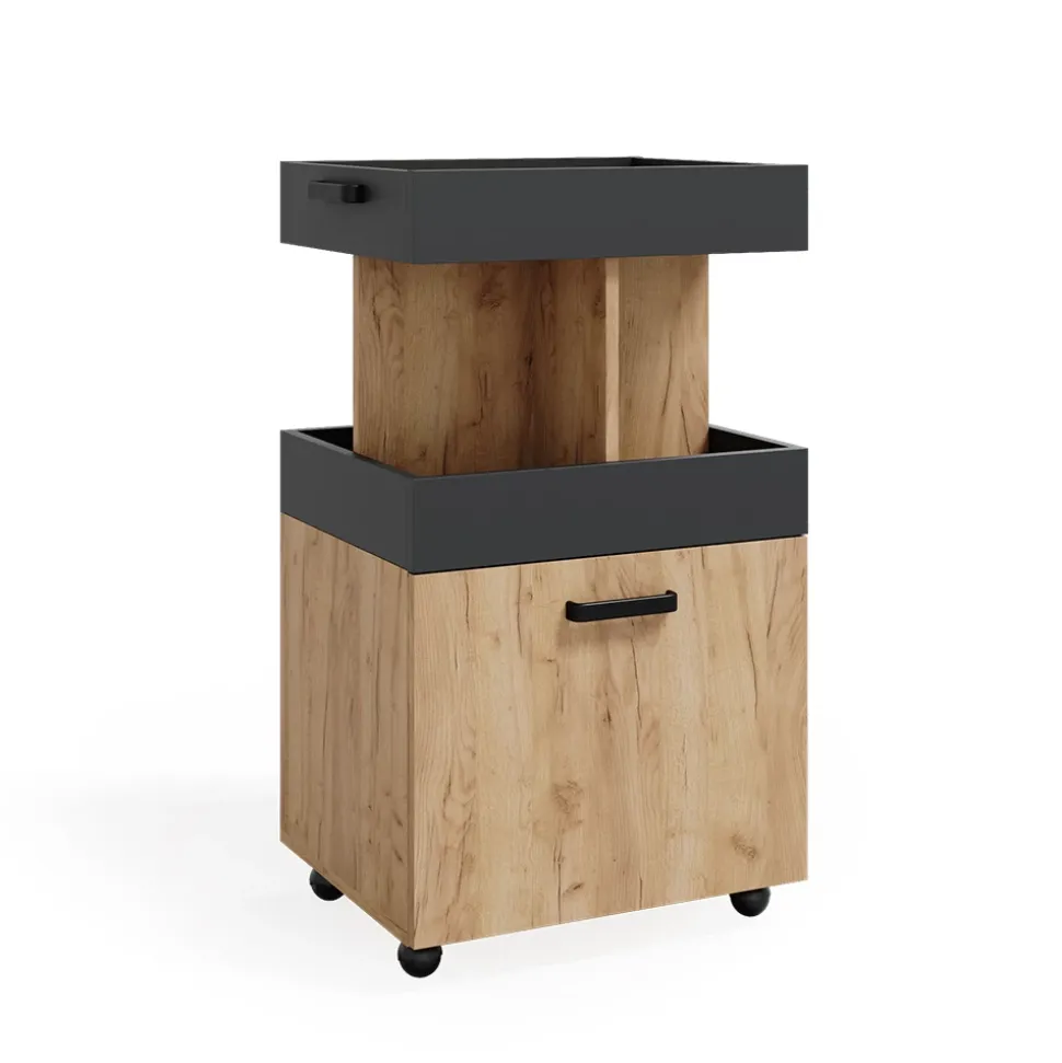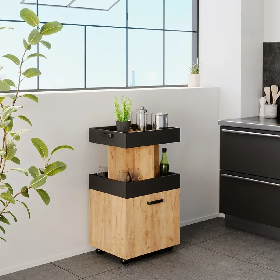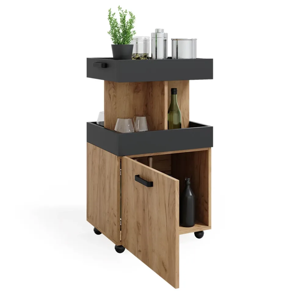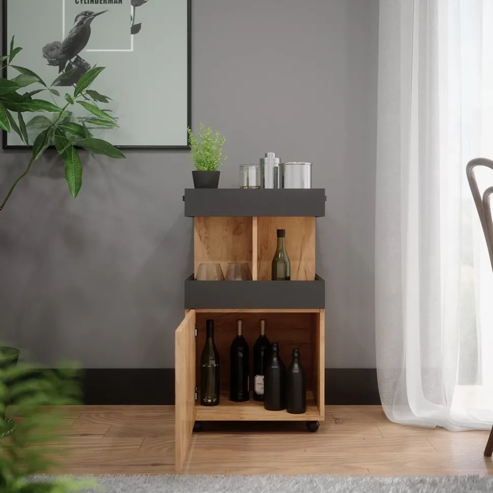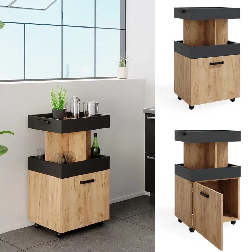 - Die rollbare Küchen-Minibar verfügt über Laufrollen und bietet bequeme offene sowie ein geschlossenes Fach für Ihre Lieblingsgetränke.