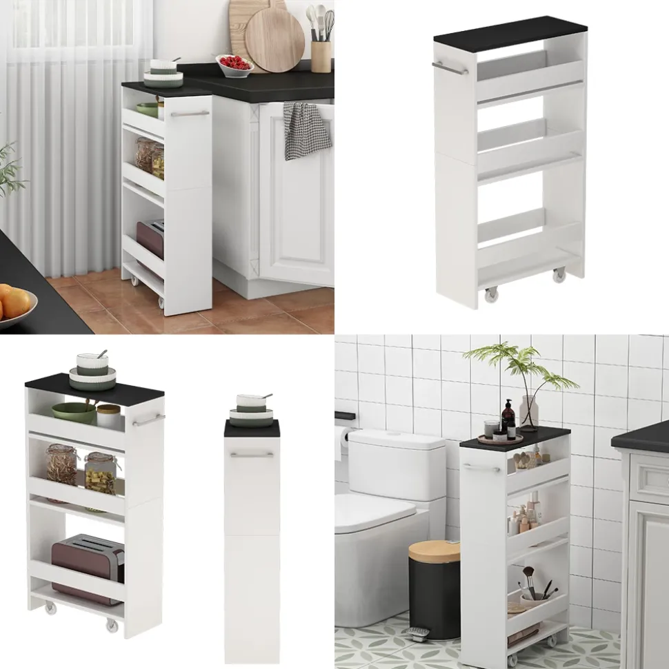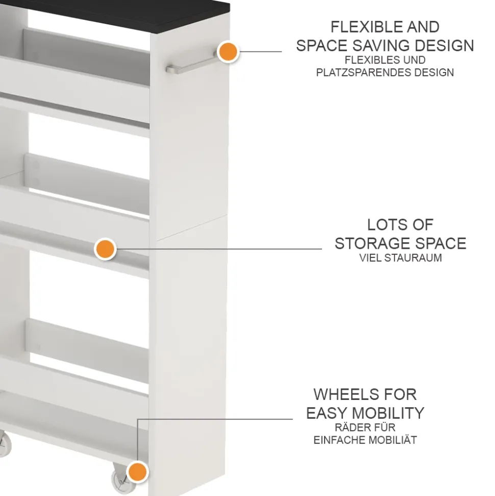- Mobile Küchenablage mit modernem Design, 3 offenen Fächern und viel Stauraum. Als Lückenregal platzsparend, leicht rollbar und flexibel für Küche oder Bad einsetzbar.