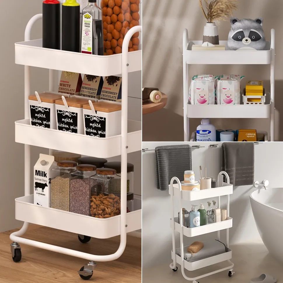 - MAßE: Das Küchenregal mit Rollen hat eine Tiefe von 34 cm, eine Breite von 45,9 cm und eine Höhe von 78,7 cm. Die detaillierten Größen sind auf den Fotos wiederzufinden.