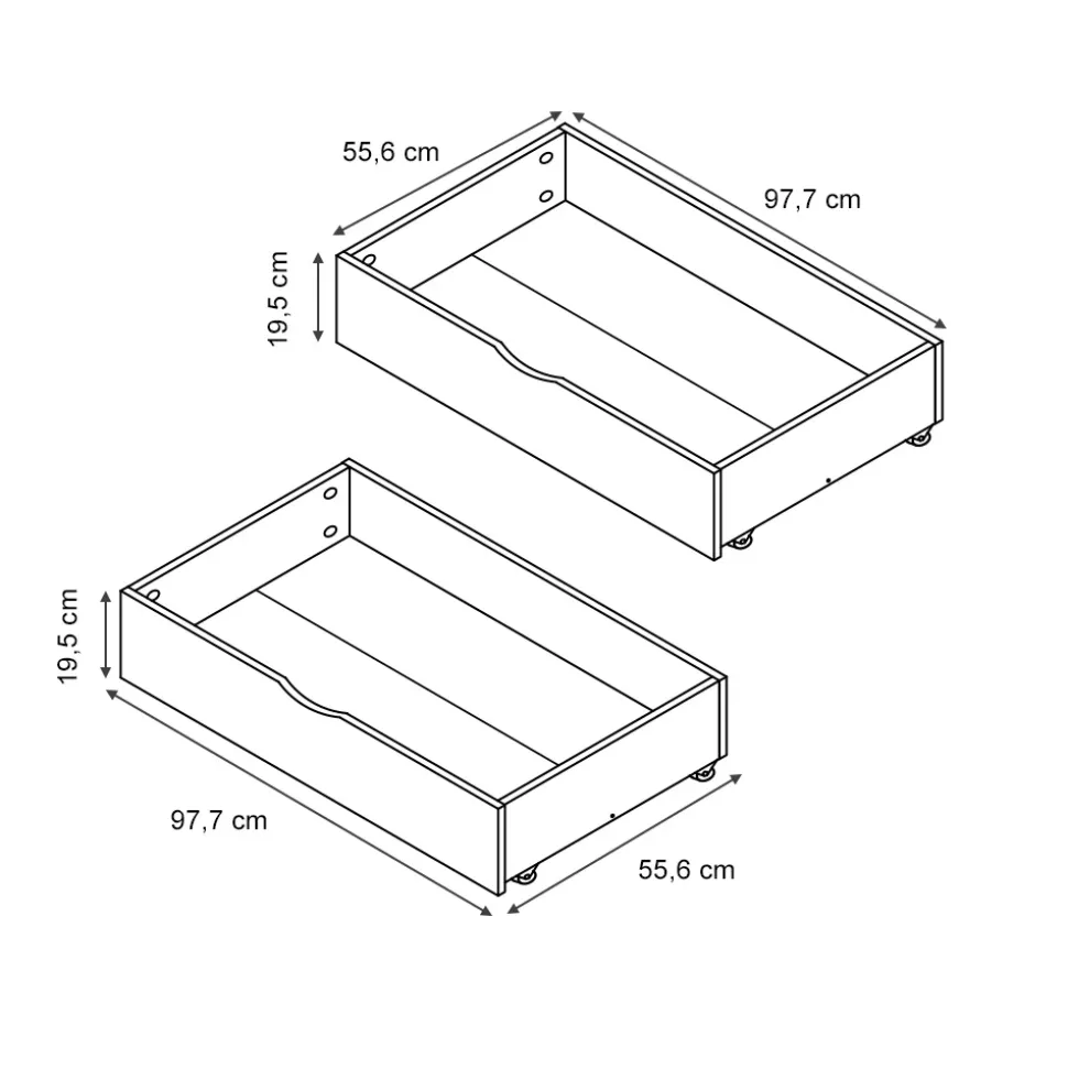 - MAßE: Die Bettschublade hat eine Breite von 97,7 cm, eine Höhe von 20 cm und eine Länge von 56 cm. Alle detaillierten Größen sind auf den Fotos angegeben.