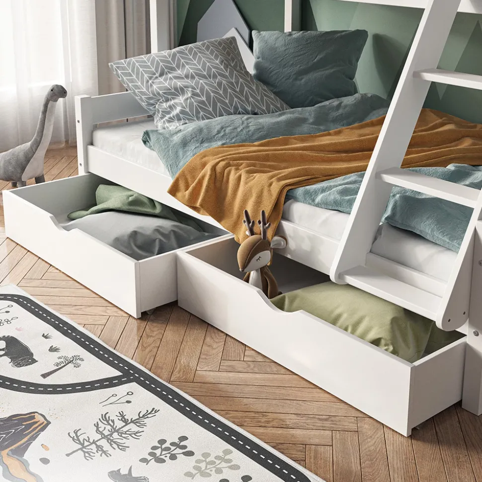 - Das Schubladenbett Aufbewahrung bietet viel Stauraum unter dem Kinderbett und ist leicht beweglich durch Laufrollen.