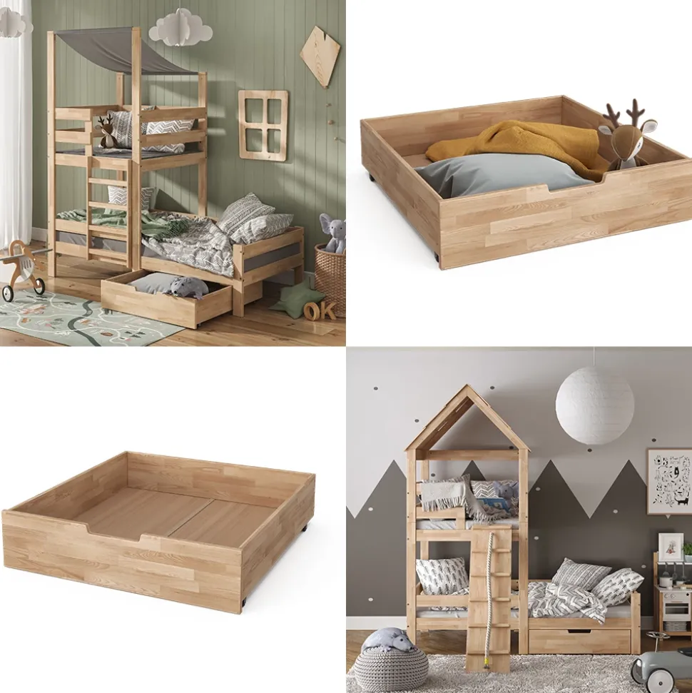 - Das Schubladenbett ermöglicht eine platzsparende Aufbewahrung von Spielzeug und Kleidung unter dem Bett.