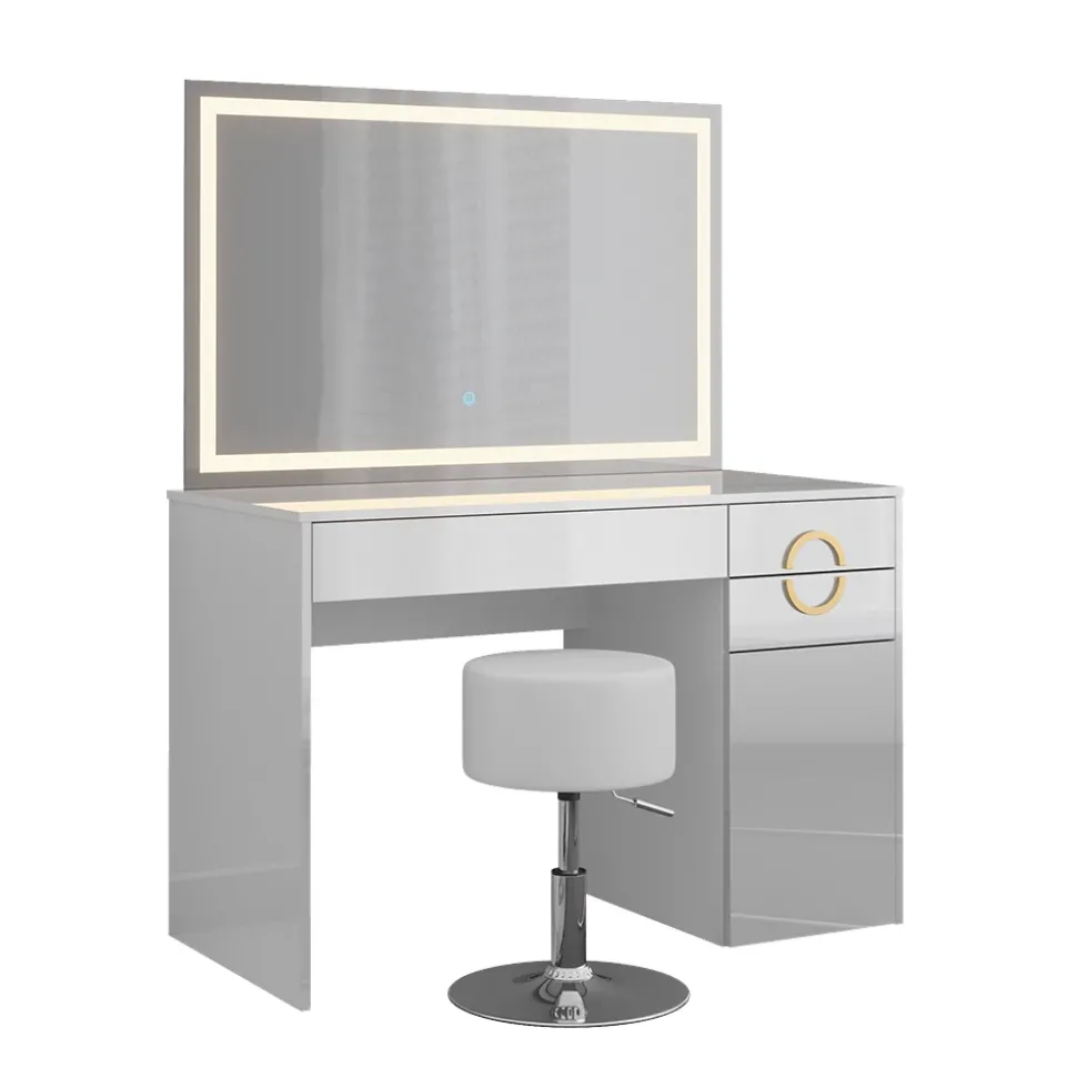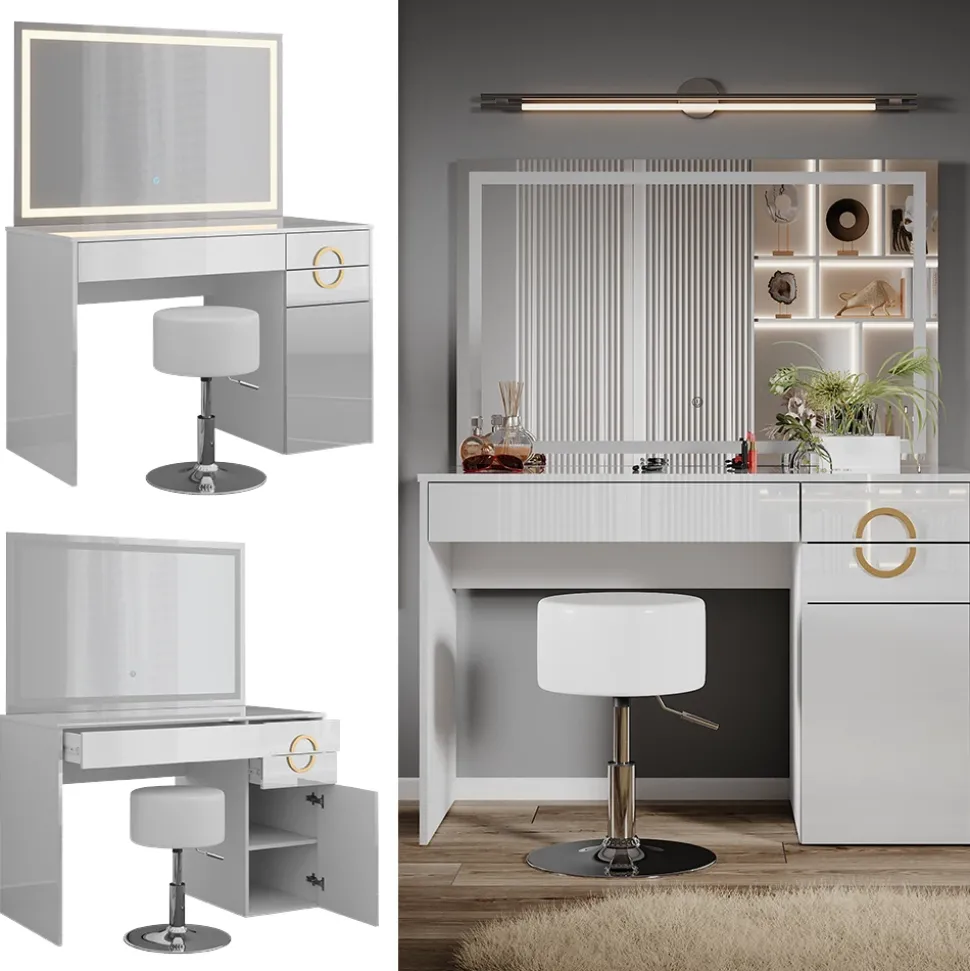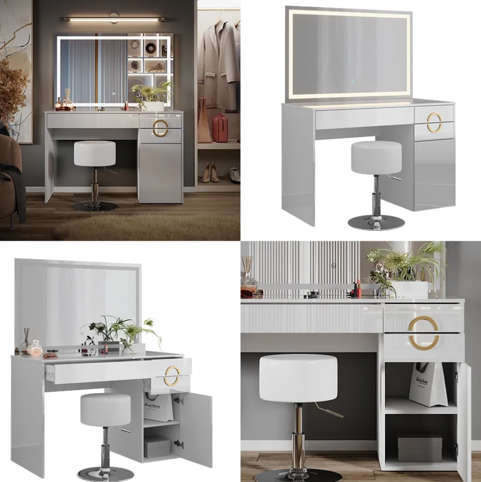 - Hervorzuheben sind die klaren Vorzüge dieser Schminkkommode: Der LED-Spiegel und der bequeme Hocker sind bereits inklusive und machen diesen Frisiertisch zur idealen Wahl für Ihr perfektes Styling.