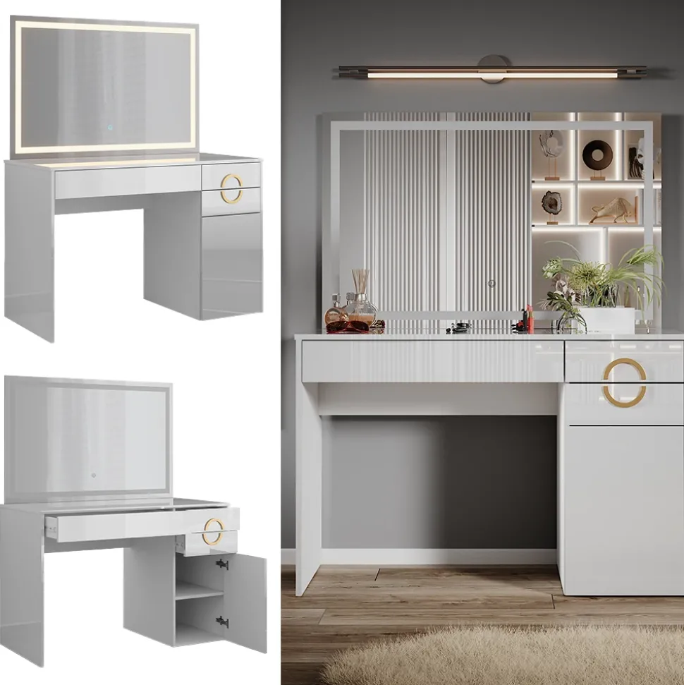 - Hervorzuheben sind die klaren Vorzüge dieser Schminkkommode: Der LED-Spiegel ist bereits inklusive und macht diesen Frisiertisch zur idealen Wahl für Ihr perfektes Styling.